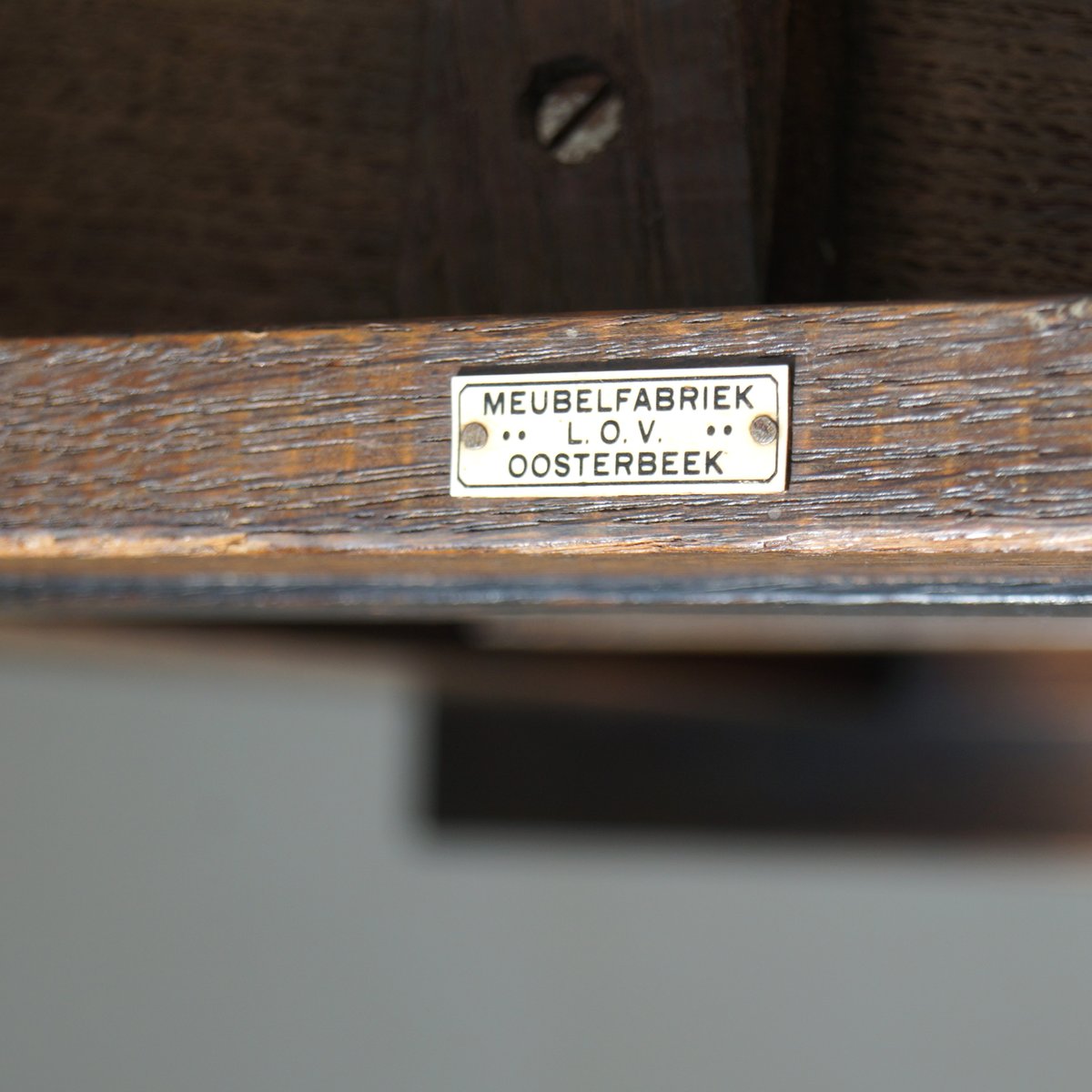 L.O.V., short for Labor Omnia Vincit (“Work Conquers All”), was founded in 1910 in Oosterbeek and remained active until 1935. The factory became a hub for Dutch modernist design, producing furniture that combined durability with a progressive aesthetic. Several important Dutch designers — including F. Spanjaard, H.F. Mertens, J. Crouwel, and J.A. Muntendam — contributed to its innovative output.