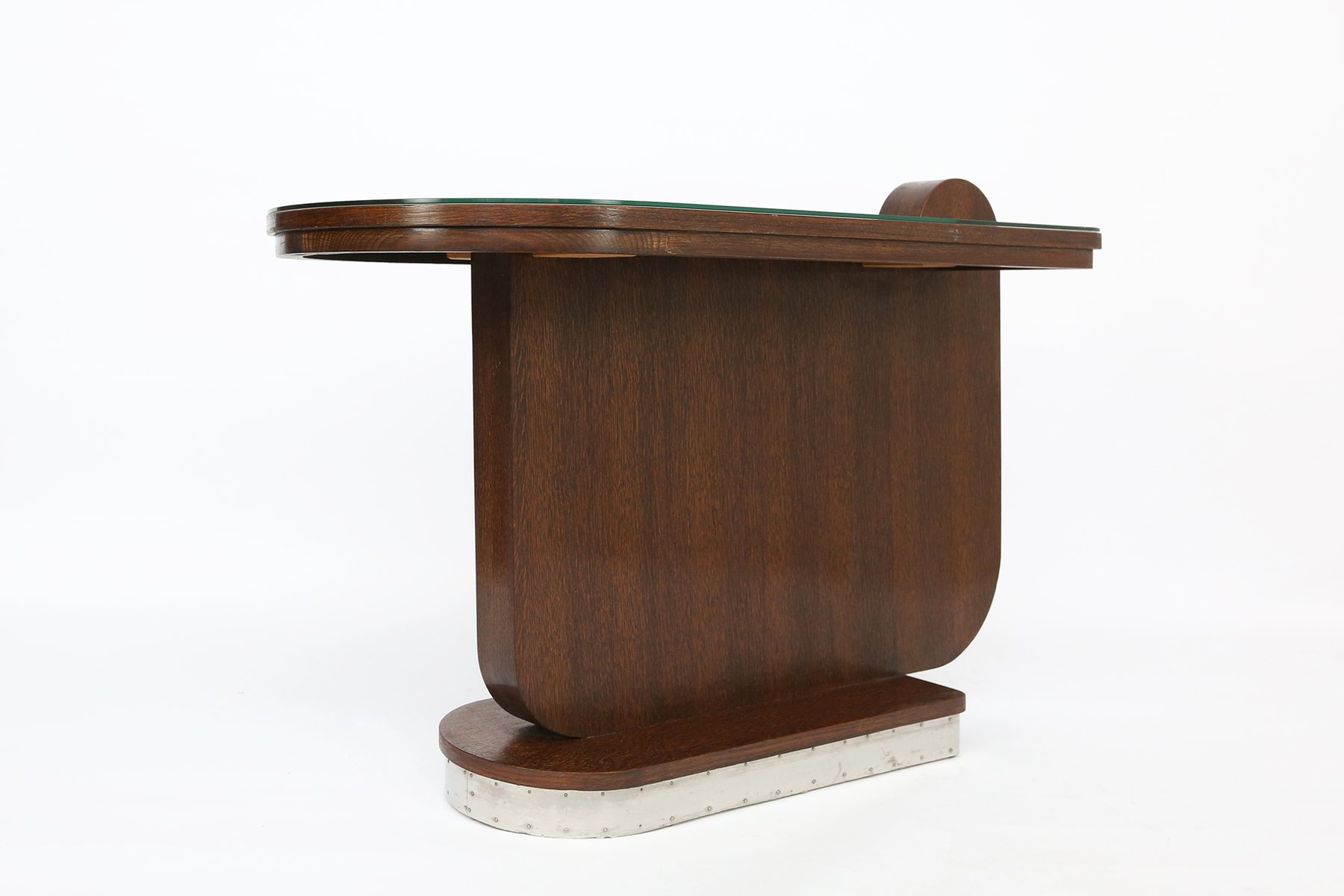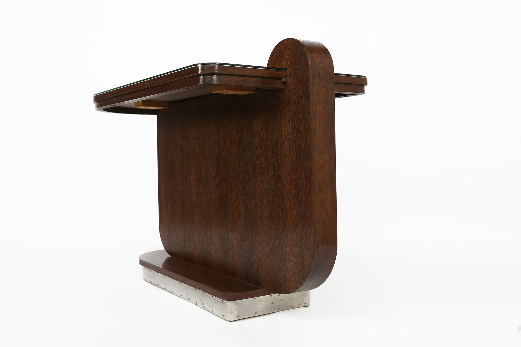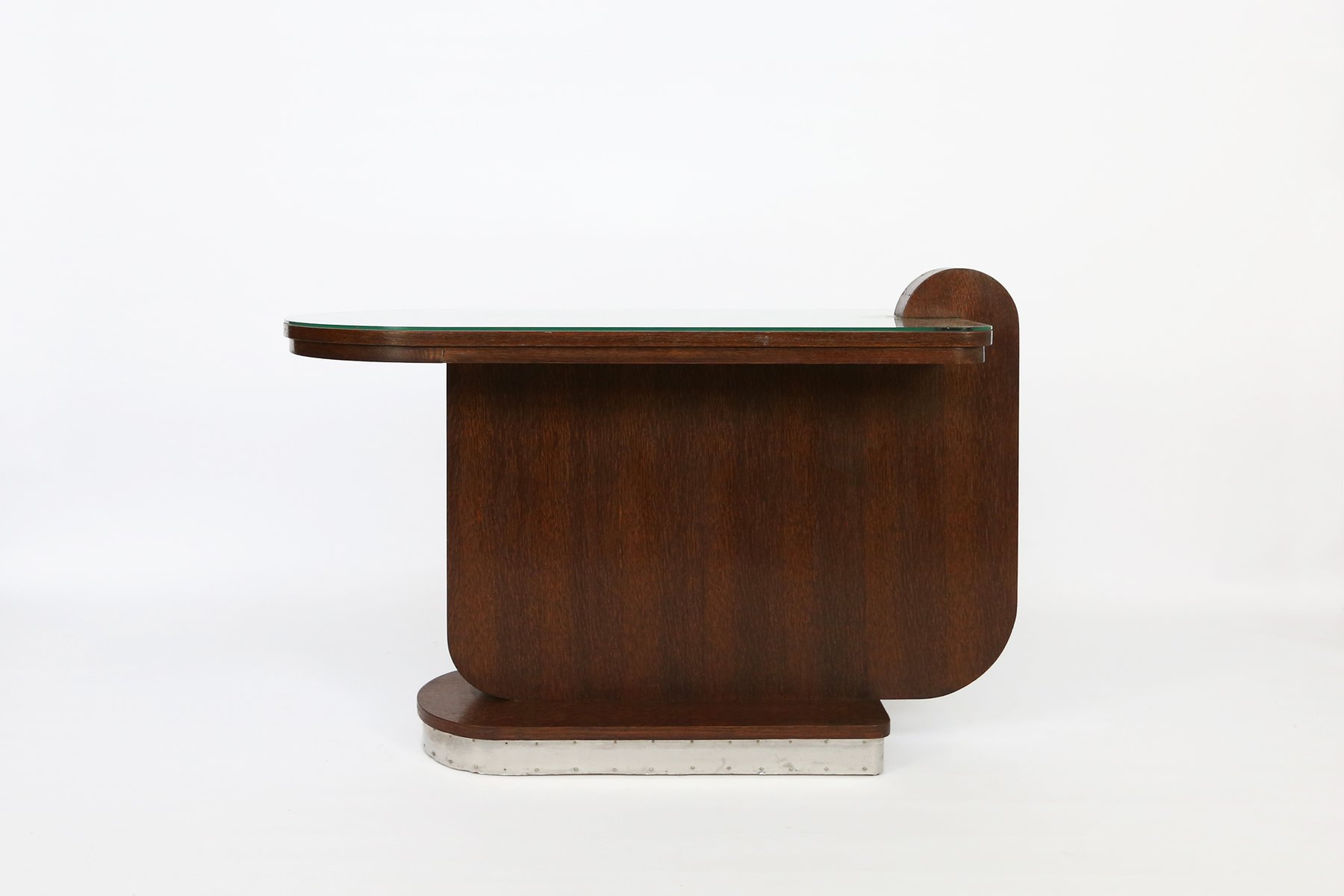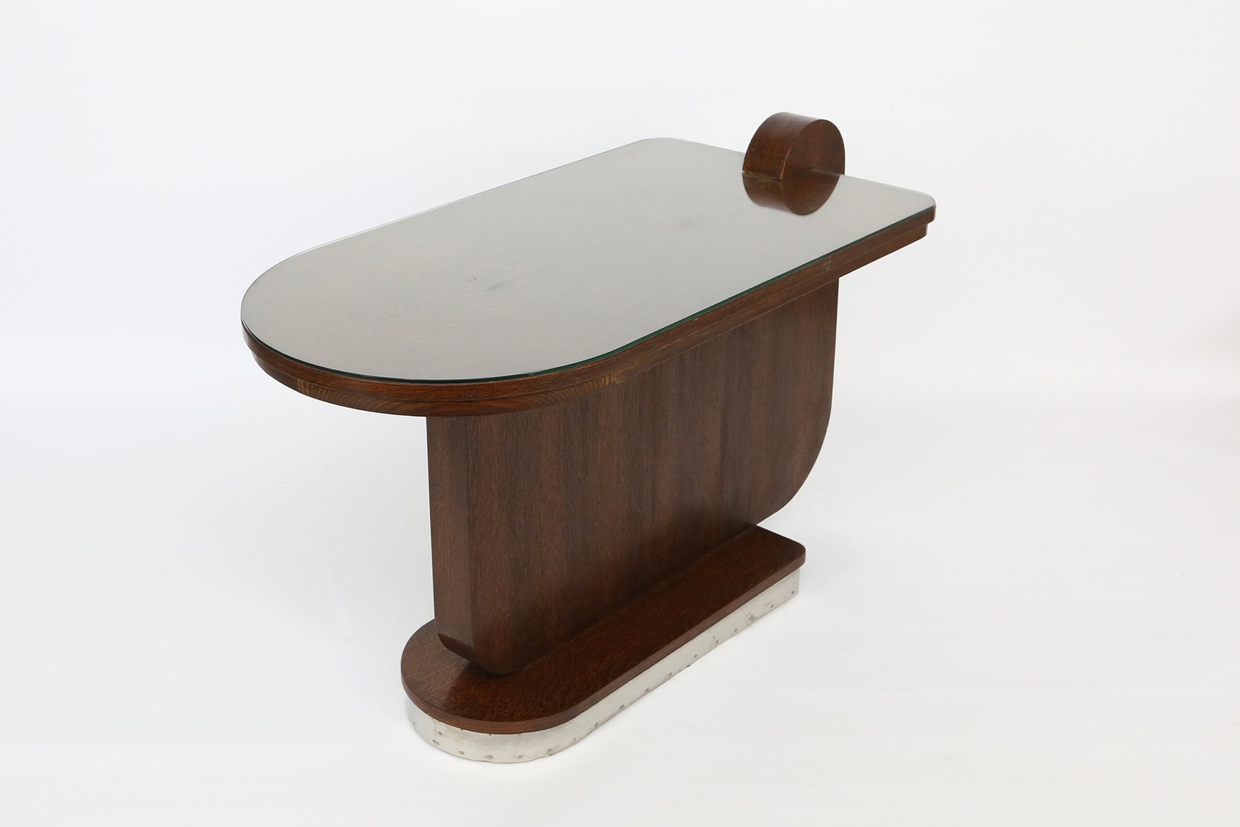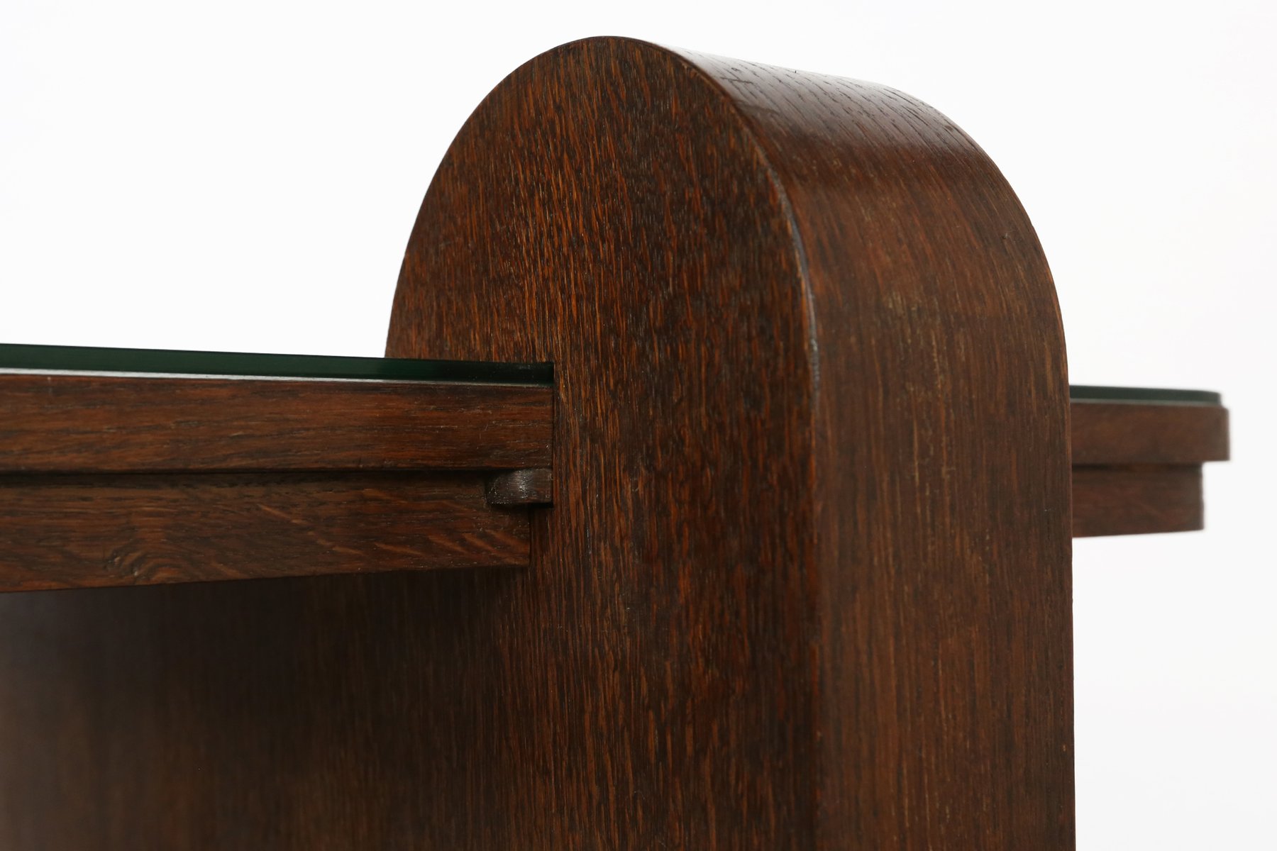 Table d'Appoint Art Déco en Chêne avec Plateau en Verre, 1930s