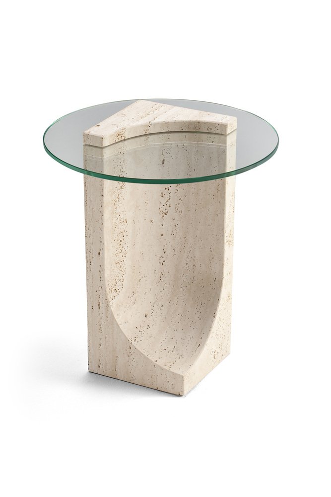 Table d'Appoint Edge avec Marbre Travertino Made in Portugal par Ferriano Sbolgi pour Collector Studio