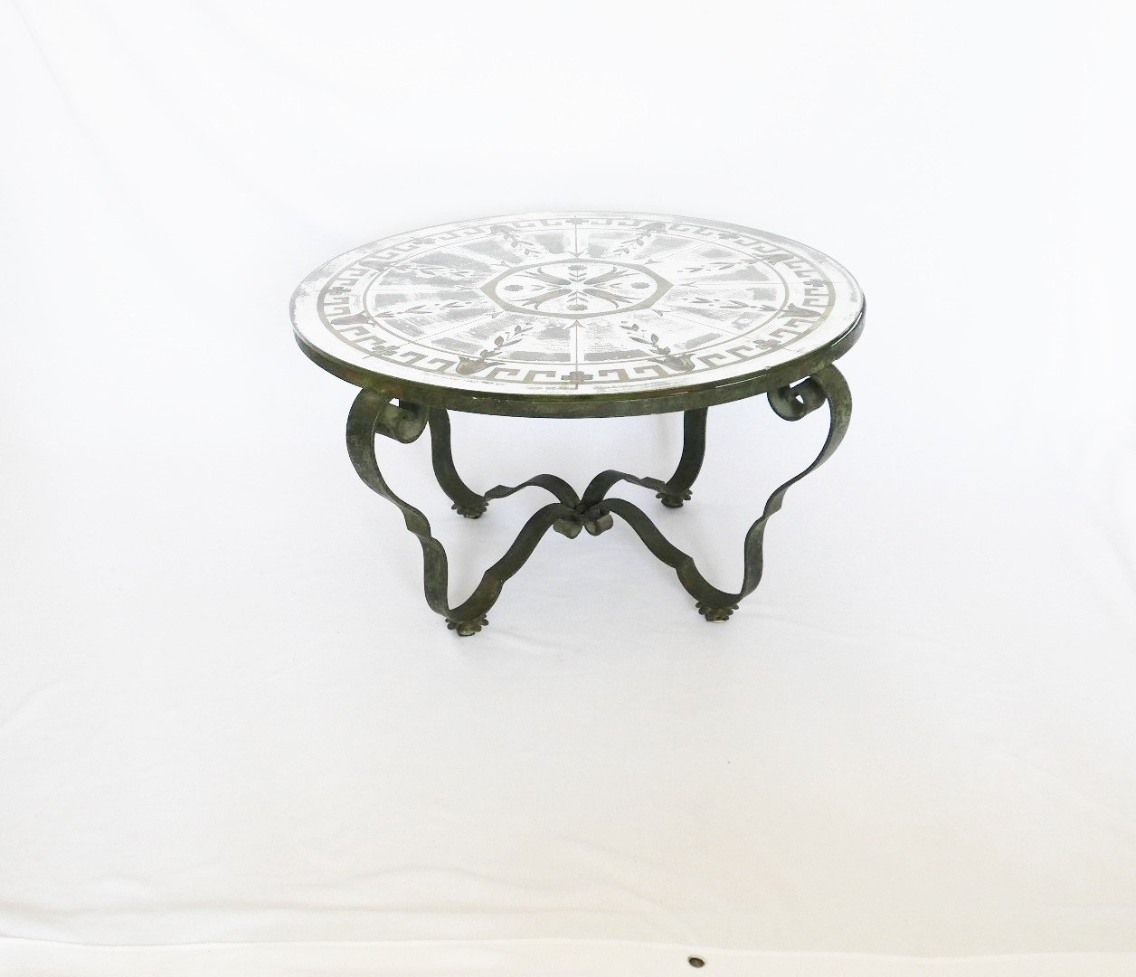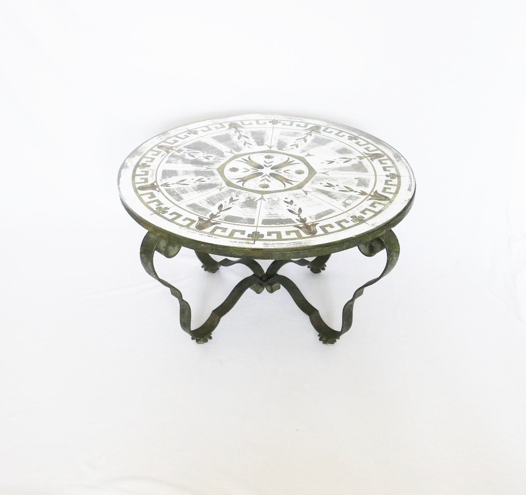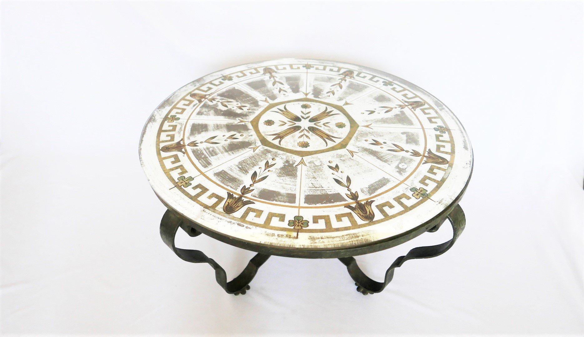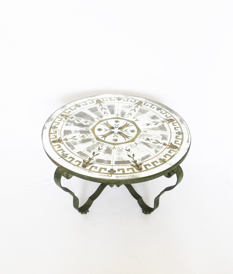 Table d'Appoint en Verre Décoré et Miroir, 1940s