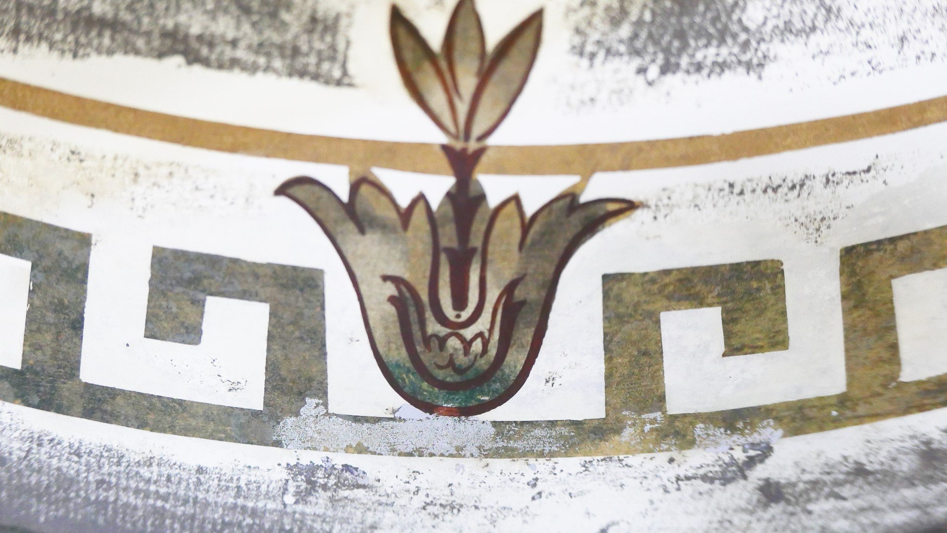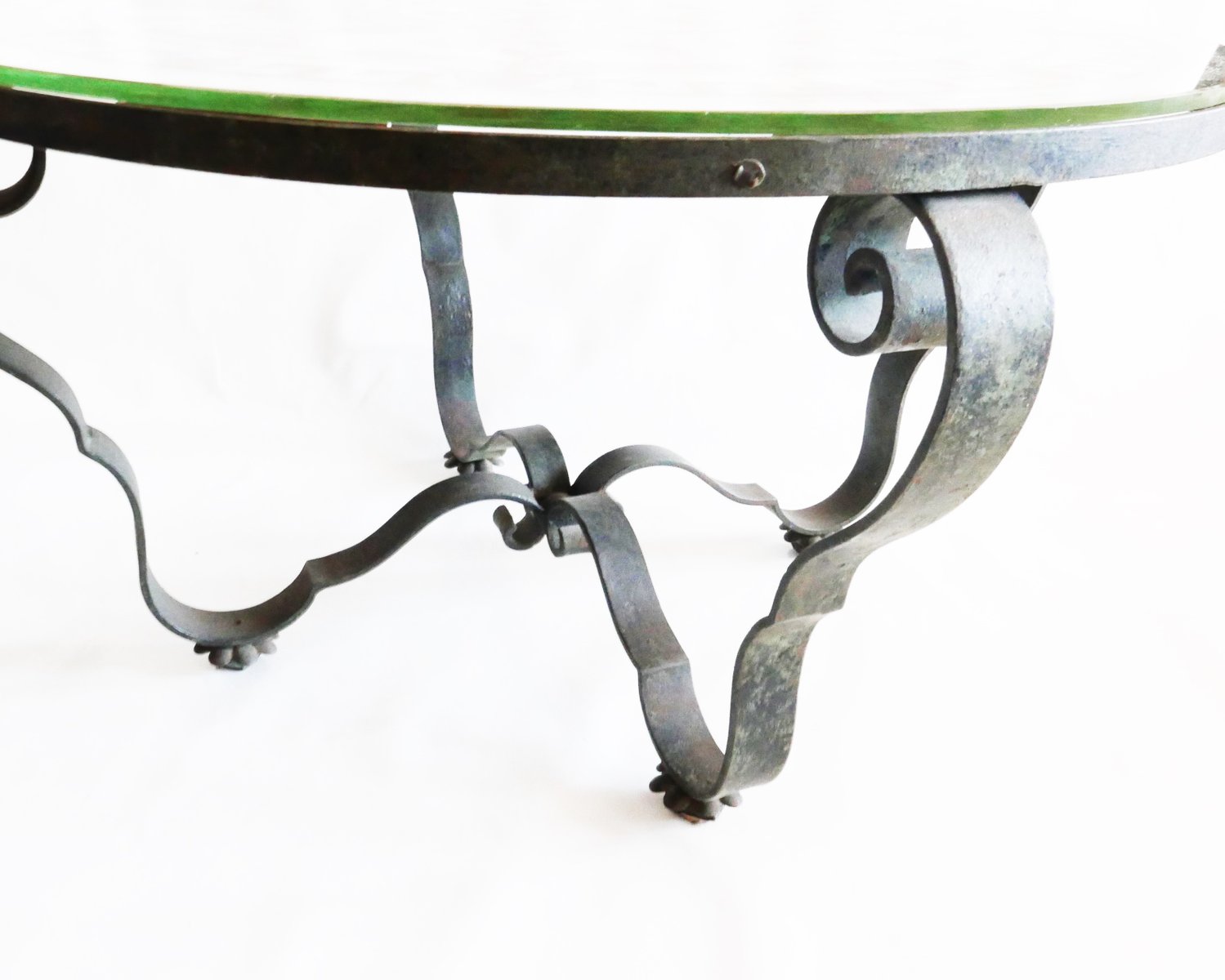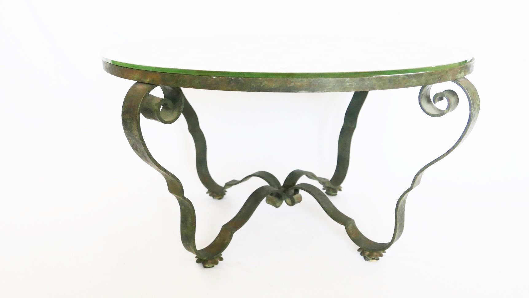Table d'Appoint en Verre Décoré et Miroir, 1940s