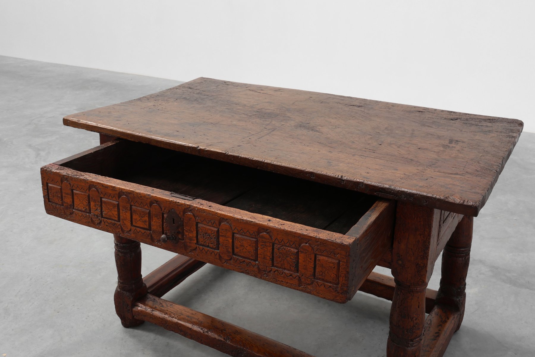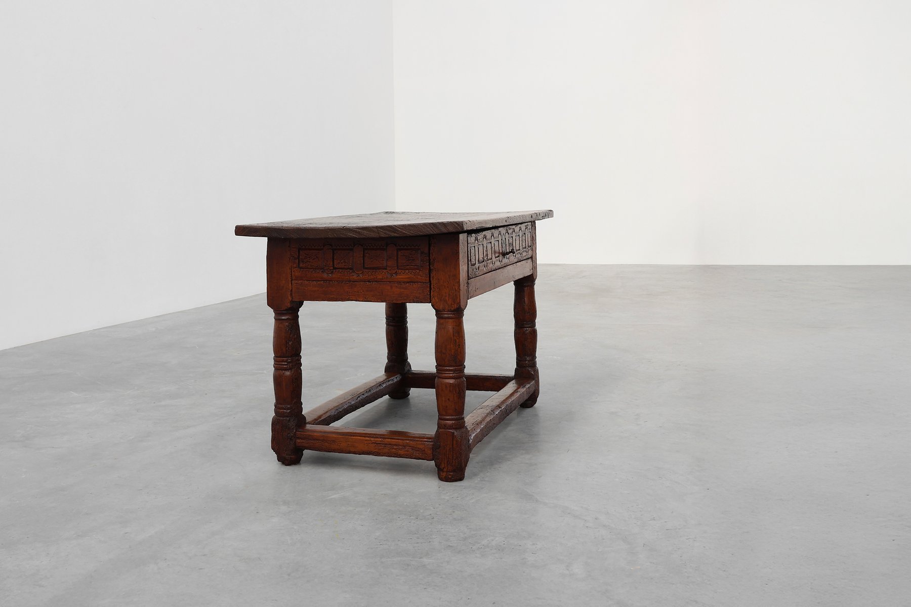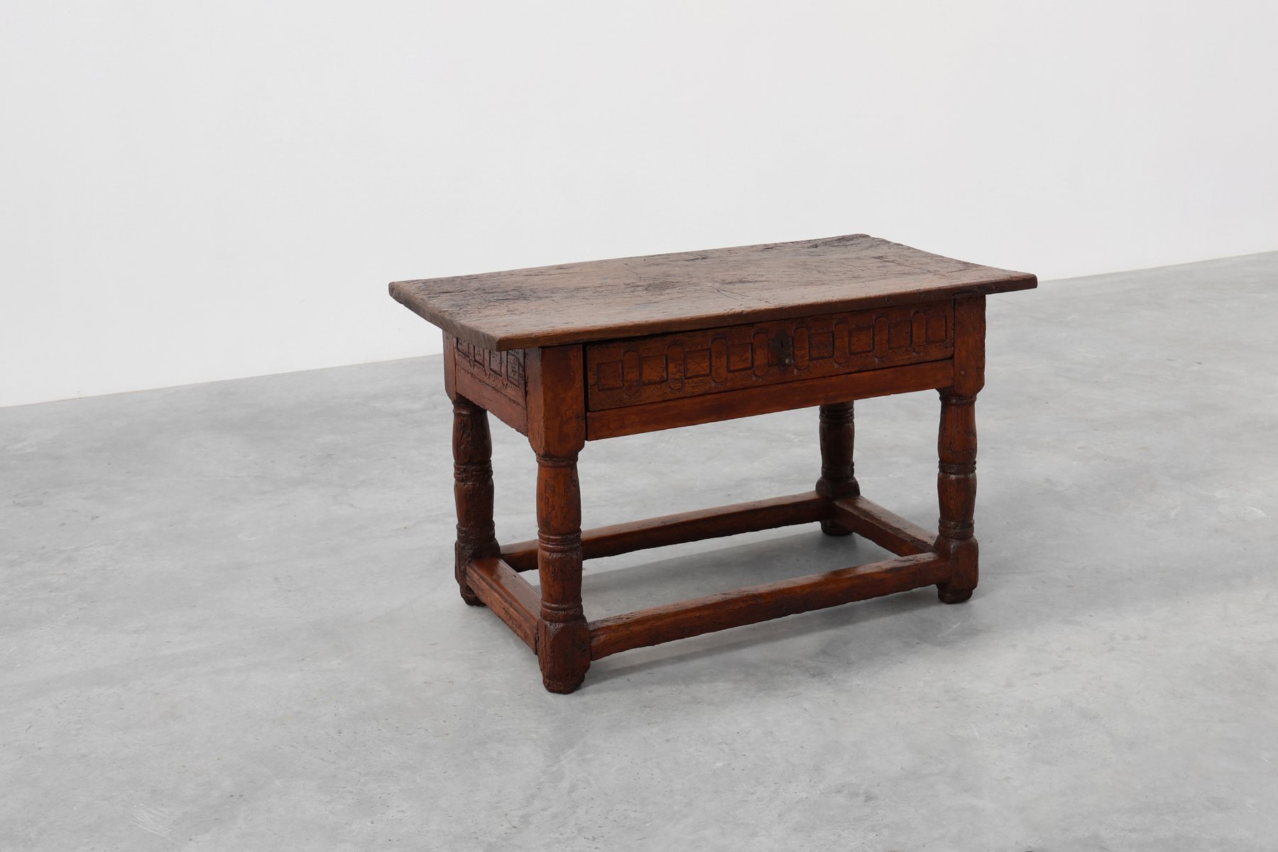 Table d'Appoint Style Wabi Wabi en Chêne Sculpté à la Main, Espagne, 17ème Siècle