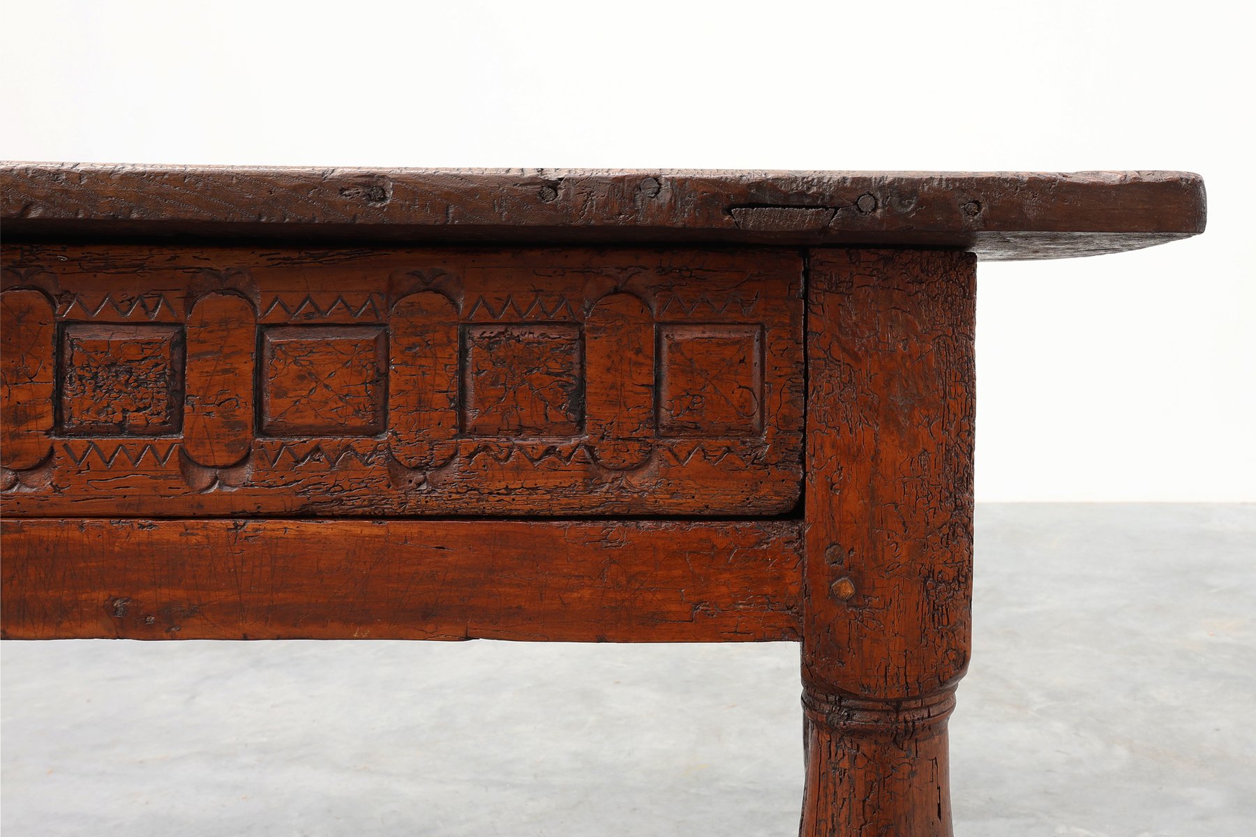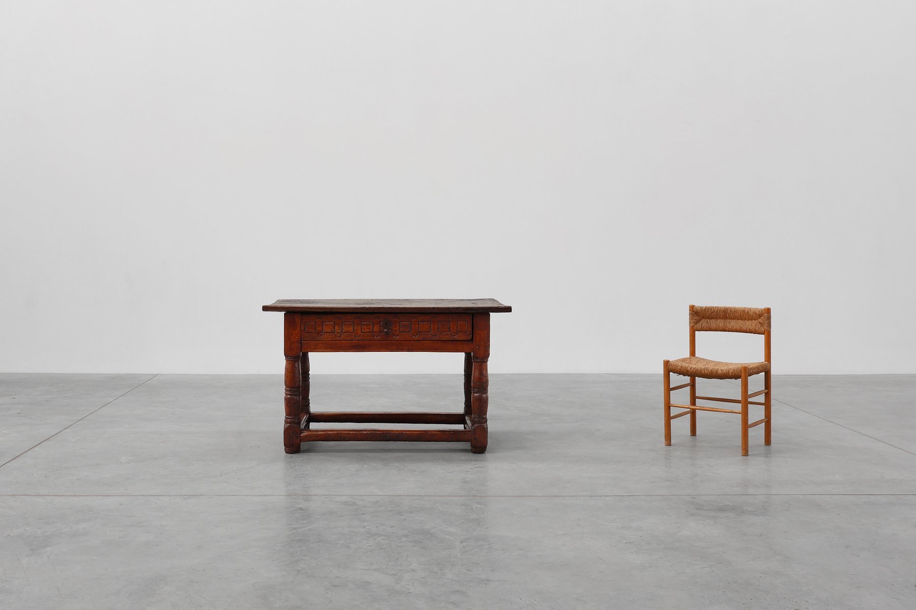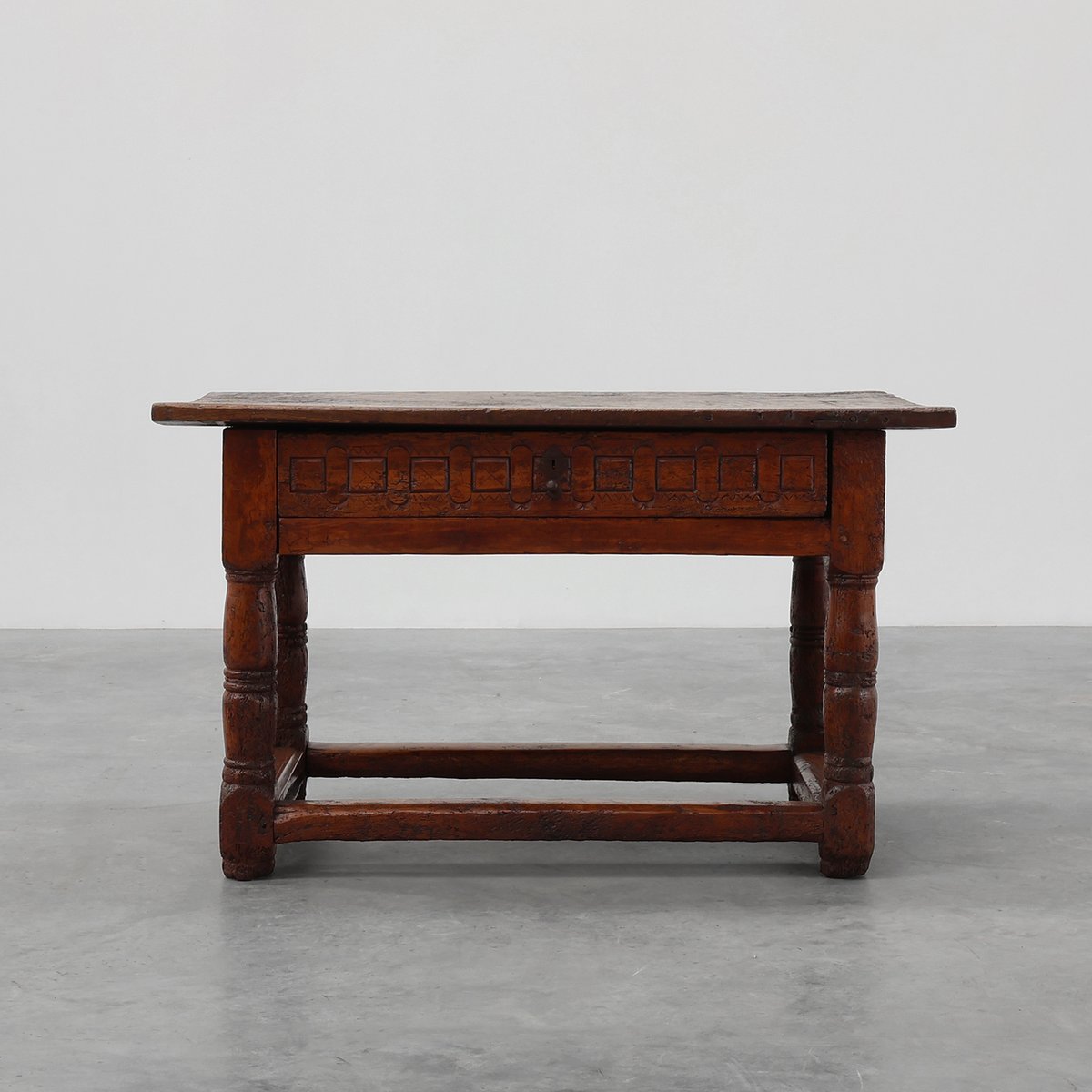 Table d'Appoint Style Wabi Wabi en Chêne Sculpté à la Main, Espagne, 17ème Siècle