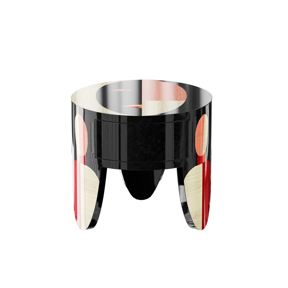 Table de Chevet Marpha en Bois Noir à Motif Géométrique par HOMMÉS Studio