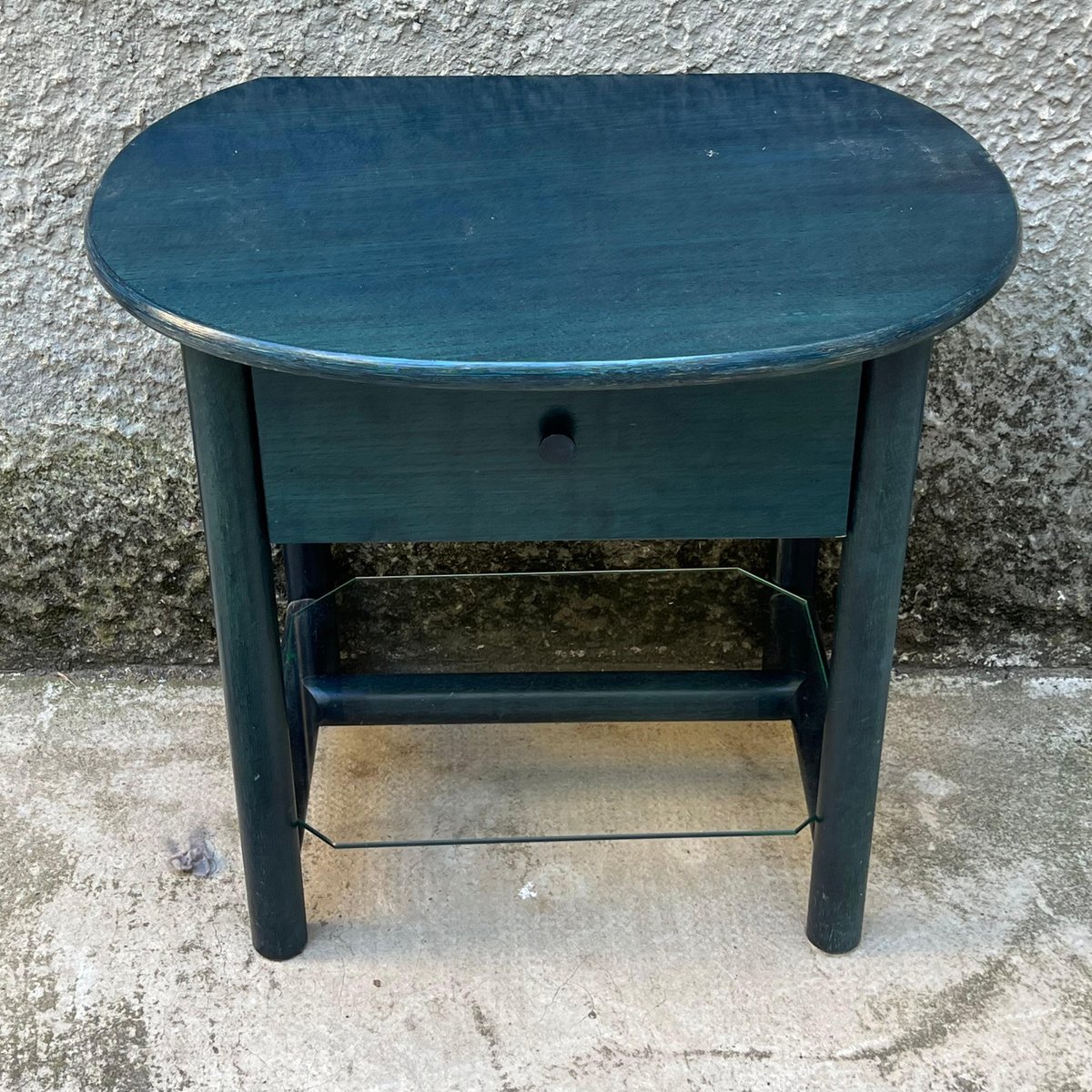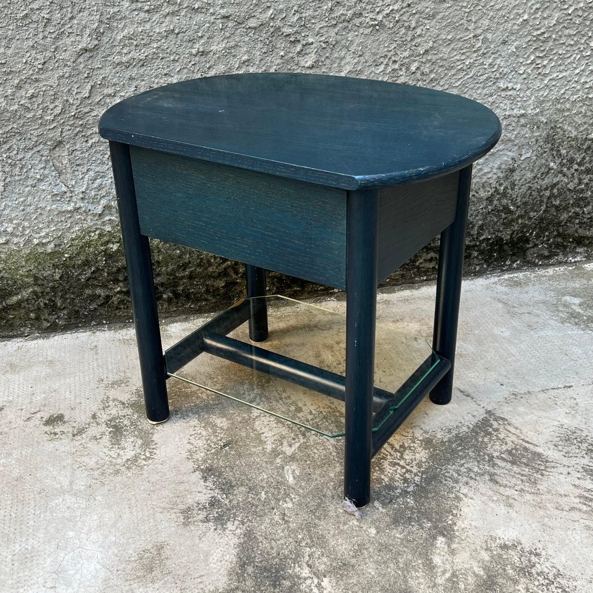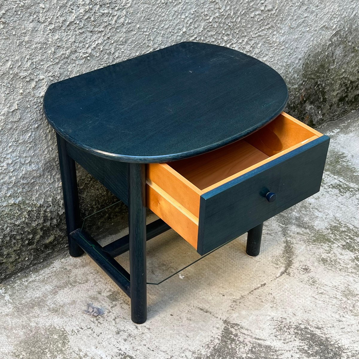 Single bedside table ideal for placement between two single beds with a refined deep blue finish. This bedside table, produced in the 1980s by the Italian company Roberti Rattan, is a perfect blend of classic design and quality craftsmanship. The side table is part of a set that also includes two matching wood and rattan headboards for single beds. The set can be purchased in its entirety or the headboards and bedside table can be sold separately, depending on the buyer's needs. Founded in the 1950s by Renato Roberti, the Roberti Rattan company quickly became a landmark in the designer furniture industry, thanks to its innovative use of rattan and other natural fibers. Based in Italy, Roberti Rattan has distinguished itself through the elegance and quality of its creations, which combine traditional craftsmanship and modernity. Over the years, Roberti Rattan has collaborated with some of the biggest names in design and architecture, including *Gianfranco Frattini* and *Franco Albini*, helping to develop products that reflect a passion for design and attention to detail. These collaborations have led to numerous awards and recognitions in the field of design, consolidating the company's reputation both in Italy and internationally. The company has received numerous awards and recognition due to the quality and innovation of its products. Roberti Rattan has been exhibited in major international exhibitions and fairs, gaining wide critical and public acclaim. This bedside table along with the matching headboards provides a unique opportunity to add a touch of elegance and history to any room. Whether you choose to purchase the entire set or just one piece, each element reflects the craftsmanship and timeless design that have made Roberti Rattan a benchmark brand in the furniture world.