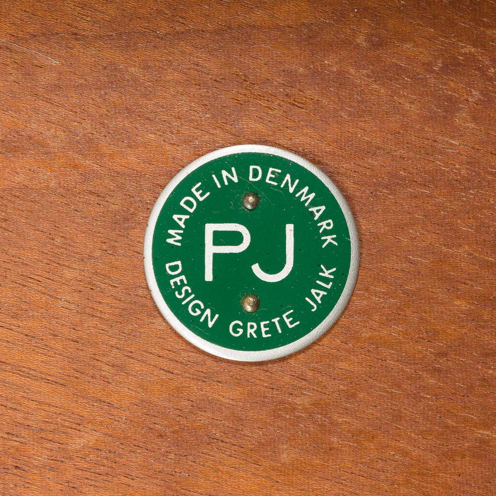 Cette table à rallonge circulaire de qualité supérieure, plaquée en bois de rose, a été conçue en 1956 par Grete Jalk, l'une des plus célèbres femmes designers de la période danoise du milieu du siècle. Ce modèle "PJ 2-5" a été fabriqué par P. Jeppesen dans les années 1960, comme l'atteste l'étiquette du fabricant qui a été conservée. La table est dotée d'un panneau supplémentaire de 55 cm de large, parfaitement assorti au grain de bois du plateau. La belle finition en palissandre massif, avec ses moulures sculptées sur le rebord, confère à la table un aspect unique, qui en fait une décoration à part entière.