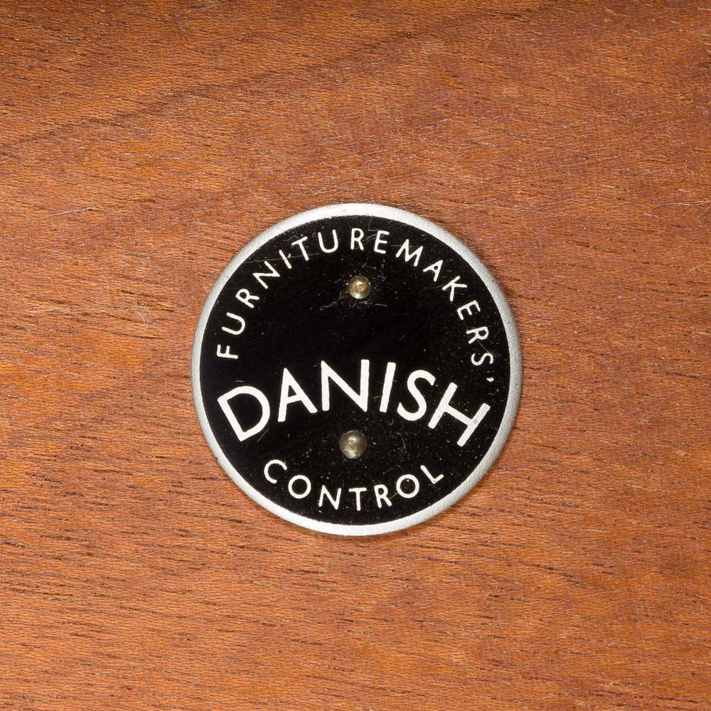 The superior quality is confirmed by the Danish Control label, constituting a distinction for furniture manufacturers. It shows a captivating grain of rosewood veneer. Slender tapered legs of solid rosewood emphasize the Danish origin while adding elegance and chick to the whole.