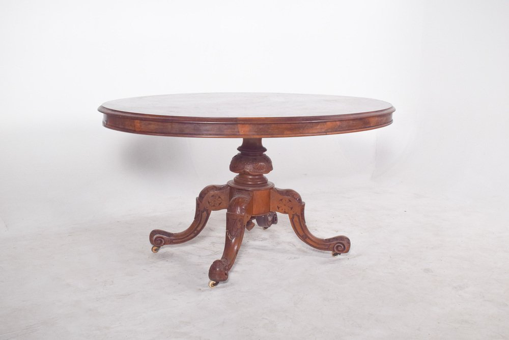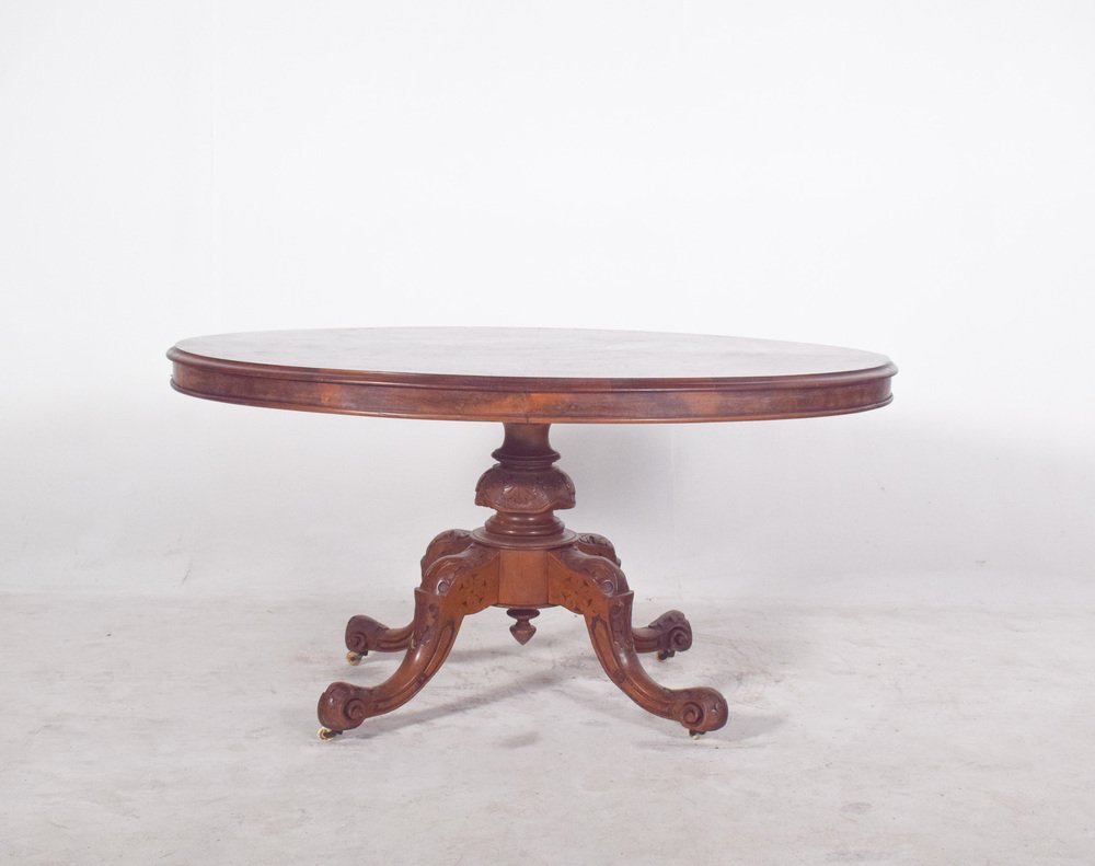 Table de Salle à Manger Ovale Antique en Noyer, 1890s