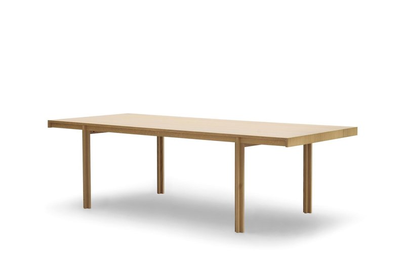 Bodil Kjaer, 1961 White Stained Oak Principal Dining Table For Karakter One of the last living mid-century Scandinavian design pioneers and a female pioneer in the field of architecture in her time, Bodil Kjær, conceived her Principal series in 1961 as part of an architectural exploration of interior solutions for modern living, called Elements of Architecture. Comprising a dining table and an upholstered dining chair, the Principal series epitomises Kjær’s forward-thinking cosmopolitan outlook and modernistic design language that slips fluidly into contemporary interior. The solid wood dining table boasts a clarified form, repeating a simple angle throughout table legs and ends of the table top, while the dining chair with its circular seat and gently rounded backrest, beautifully upholstered, adds a softness to the clear, unfussed geometry, an invitation to linger. WITH PRINCIPAL KJÆR USES A THREE-DIMENSIONAL FORM RATHER THAN THE MORE CONVENTIONAL FLAT OR SMOOTH JOINT OF MUCH FURNITURE. IT IS A DISTINCTIVE ELEMENT THAT TELEGRAPHS ITS STRENGTH BUT ALSO SHOWS THE SHEER BEAUTY OF STRUCTURE. Bodil Kjær’s drawings showing the crisp clear form including a distinctive three-dimensional joint are precise and considered. Although never prototyped, the drawings were enough to inspire Christian Elving, CEO and Co-founder of Karakter to put what Kjær had called the Z series into production. Product Material Frame in solid oak or walnut with clear lacquer, table top in oak or walnut veneer with clear lacquer, plastic glides Measurements Height 72 cm Width 100 cm Length 240 cm General specifications Enviroment Indoor Requires assembly Yes Gliders Plastic "I am not a furniture designer. I am a designer of environments of the environment. And a problem solver. I go out, I see a problem and I work with other people to solve it." Important information regarding images of products: Please note that some of the images show other colors and variations of the model, these images are only to present interior design proposals. The item that is selling is on the first image. Important information regarding color(s) of products: Actual colors may vary. This is due to the fact that every computer monitor, laptop, tablet and phone screen has a different capability to display colors and that everyone sees these colors differently. We try to edit our photos to show all of our products as life-like as possible, but please understand the actual color may vary slightly from your monitor About the designer: She has been featured in The New York Times and Wall Street Journal Magazine. She designed a desk for MIT which was dubbed ‘The most beautiful desk in the world’ and eventually immortalized in 3 early James Bond movies. Danish architect, designer and professor Bodil Kjær (born 1932) is the female trailblazer of Danish midcentury design, who although tutored by modernist master Finn Juhl, in her own words “… never had much interest in following in the footsteps of the Danish rat pack”. Kjær looked to America, inspired by Charles and Ray Eames, and indeed many of her most notable designs stems from her time in the U.S., where she briefly worked at Paul McCobb, before moving to Boston to further her career in corporate interior architecture. Kjær’s reignited prominence as a designer in later years is well deserved. Pared back, elegant and decidedly modern, her iconic pieces slip effortlessly into contemporary life 60 years on. Today, Bodil Kjær is back in Denmark and lives on the east coast of Jutland where she continues to teach, do research and participate in the architectural development of the city of Aarhus. About the manufacturer: Karakter is a Danish design company founded on a spirit of exploration, courage and an uncompromising attitude to quality. Rooted in the Scandinavian design tradition with an international outlook, Karakter presents a portfolio of furniture, lighting and objects that is relevant, honest, expressive and sometimes playful. Aspiring to build an enduring legacy, they work with contemporary designers such as Aldo Bakker and PlueerSmitt and present works by the masters Bodil Kjær, Achille and Pier Giacomo Castiglioni, Paul McCobb, Joe Colombo and Angelo Mangiarotti. Each piece has a clear, undeniable expression, ensuring it pride of place in private homes and public spaces worldwide. About the manufacturer: Karakter is a Danish design company founded on a spirit of exploration, courage and an uncompromising attitude to quality. Rooted in the Scandinavian design tradition with an international outlook, Karakter presents a portfolio of furniture, lighting and objects that is relevant, honest, expressive and sometimes playful. Aspiring to build an enduring legacy, they work with contemporary designers such as Aldo Bakker and PlueerSmitt and present works by the masters Bodil Kjær, Achille and Pier Giacomo Castiglioni, Paul McCobb, Joe Colombo and Angelo Mangiarotti. Each piece has a clear, undeniable expression, ensuring it pride of place in private homes and public spaces worldwide. About the manufacturer: Karakter is a Danish design company founded on a spirit of exploration, courage and an uncompromising attitude to quality. Rooted in the Scandinavian design tradition with an international outlook, Karakter presents a portfolio of furniture, lighting and objects that is relevant, honest, expressive and sometimes playful. Aspiring to build an enduring legacy, they work with contemporary designers such as Aldo Bakker and PlueerSmitt and present works by the masters Bodil Kjær, Achille and Pier Giacomo Castiglioni, Paul McCobb, Joe Colombo and Angelo Mangiarotti. Each piece has a clear, undeniable expression, ensuring it pride of place in private homes and public spaces worldwide. She has been featured in The New York Times and Wall Street Journal Magazine. She designed a desk for MIT which was dubbed ‘The most beautiful desk in the world’ and eventually immortali