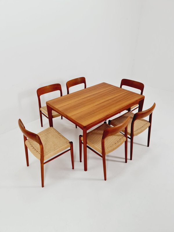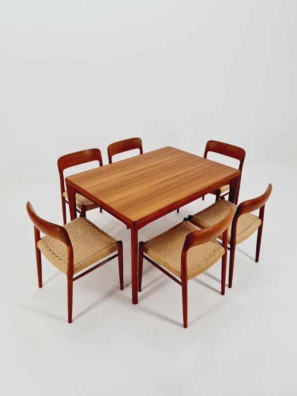 Table de Salle à Manger Rectangulaire en Teck avec Deux Rallonges par Henning Kjaernulf, Danemark, 1960s