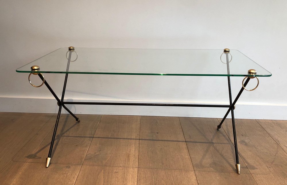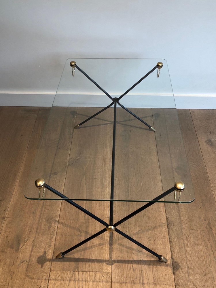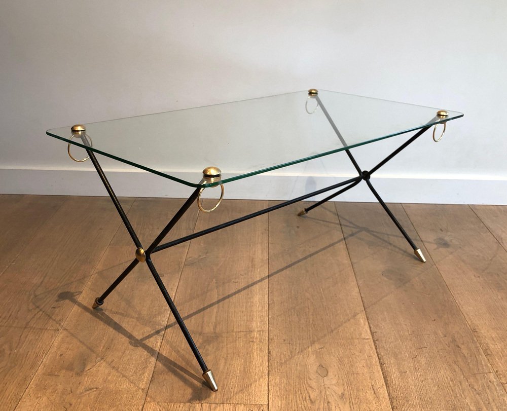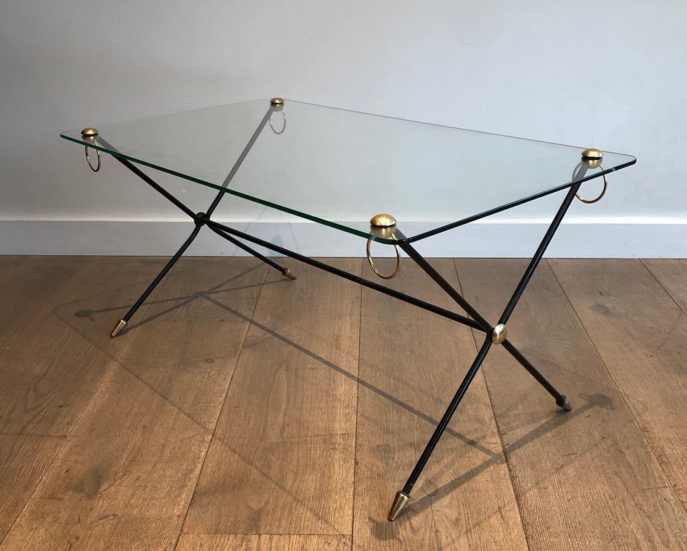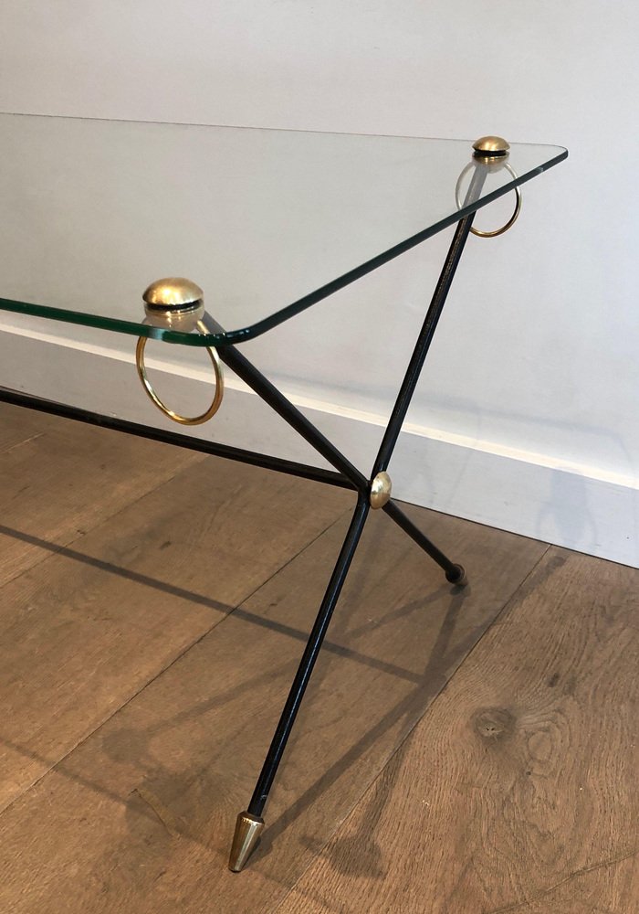 Table en Laiton Laqué dans le style de Jacques Adnet, 1950s