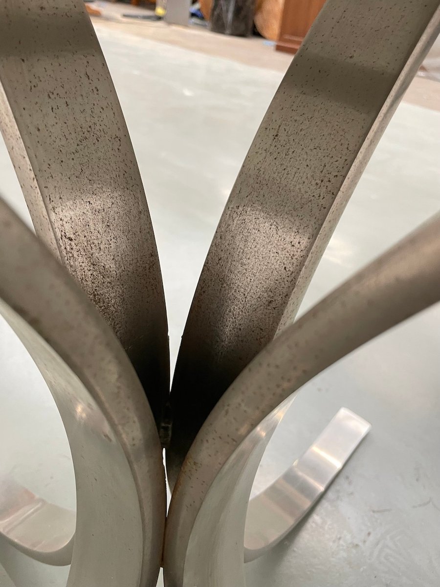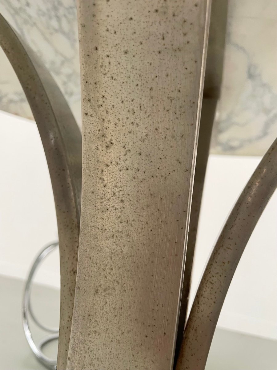 Le chrome est patiné, légèrement oxydé et possède des petites traces de rouille par endroits.