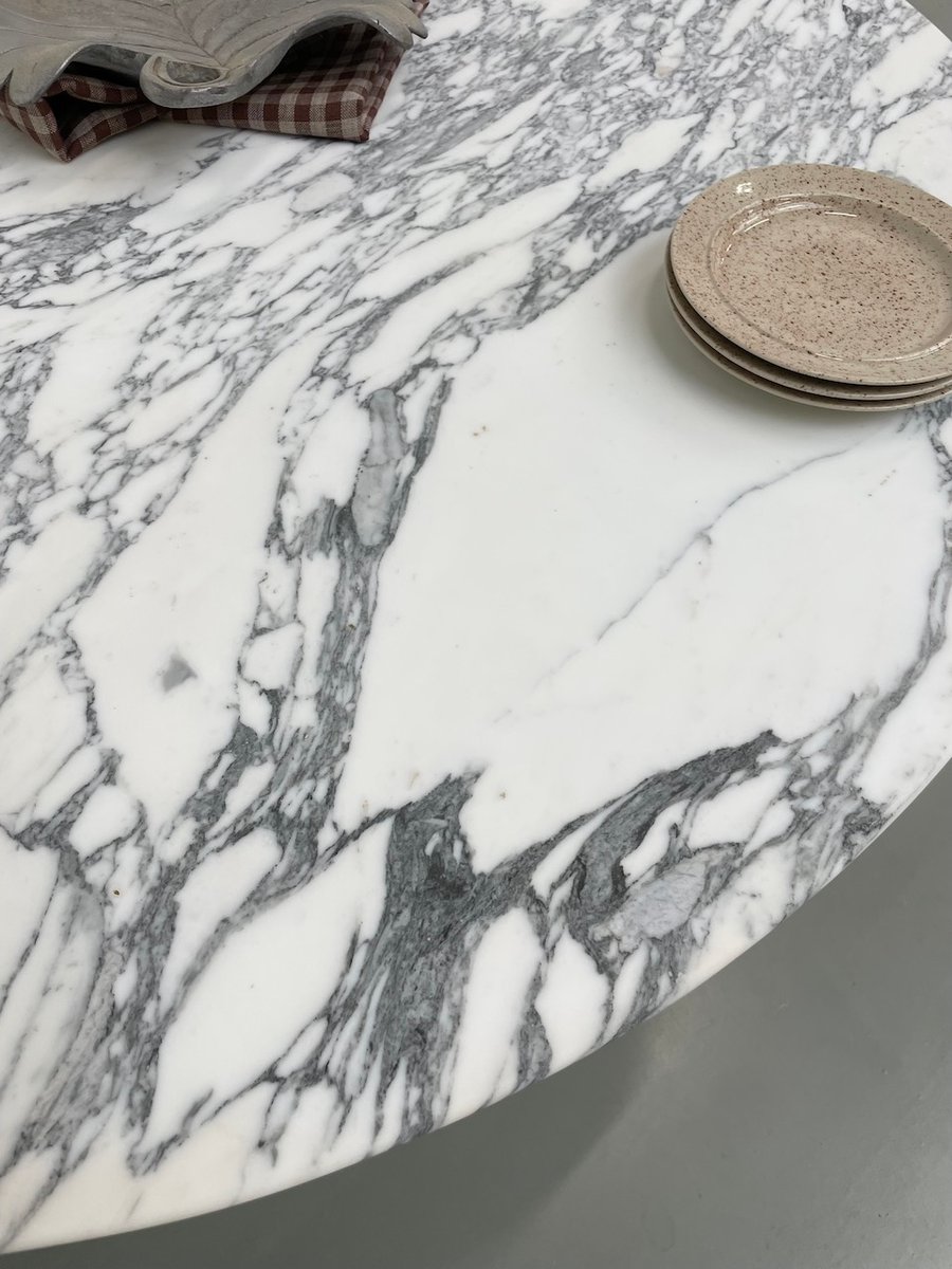 We love the unique design of its base, and the marble which contrasts with this material.