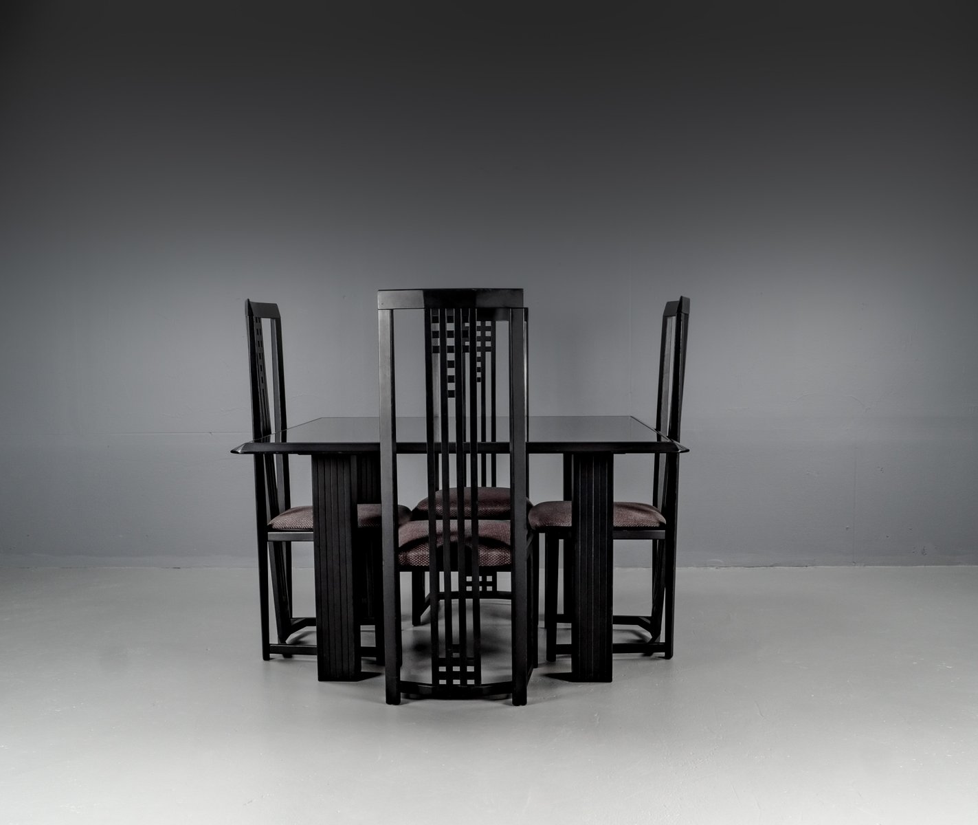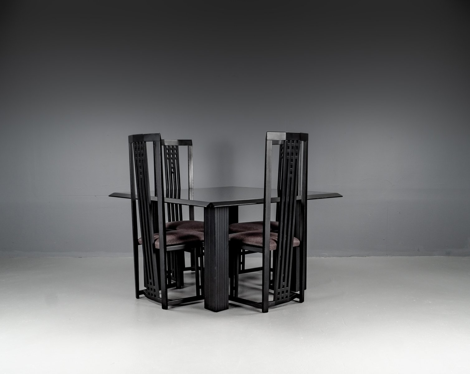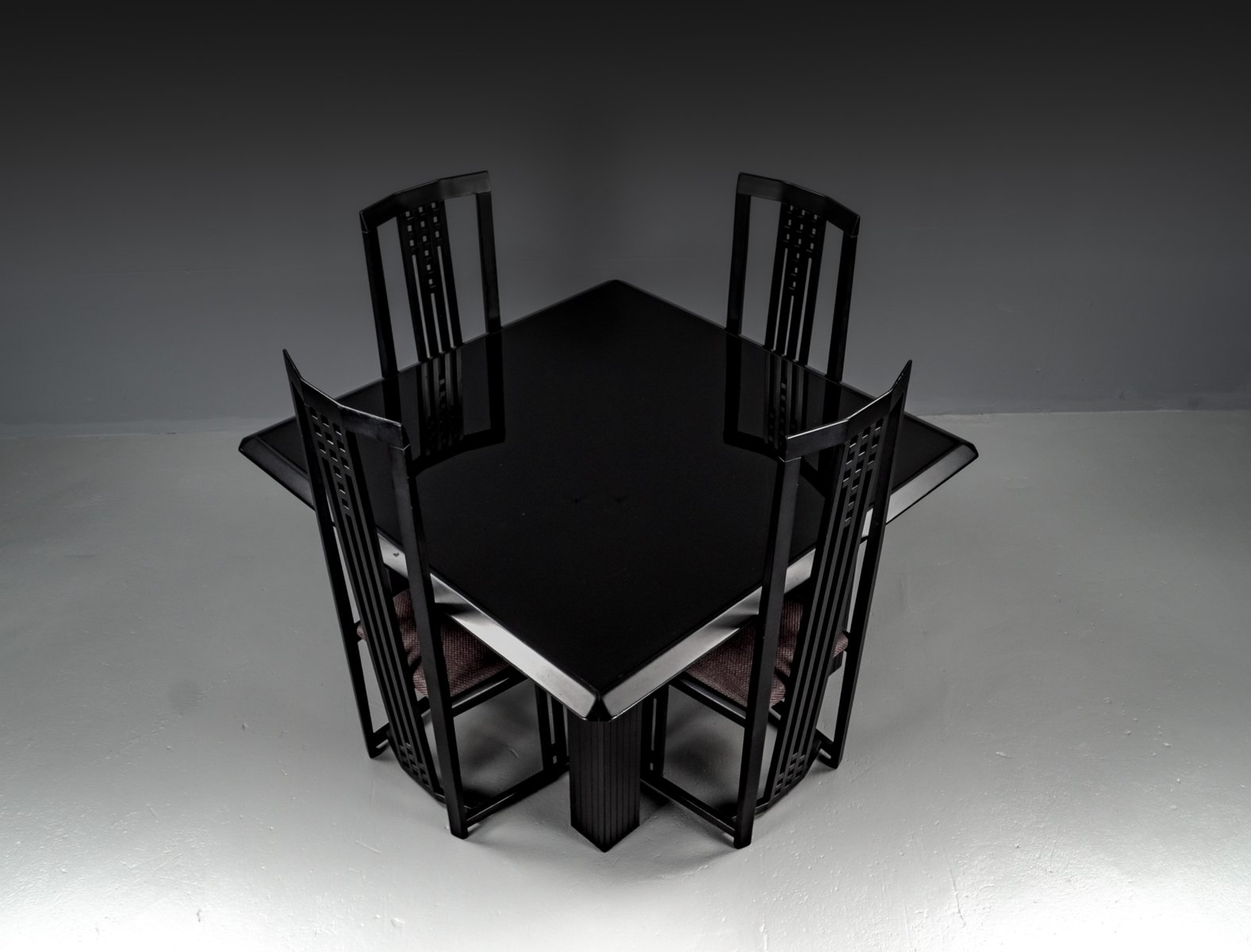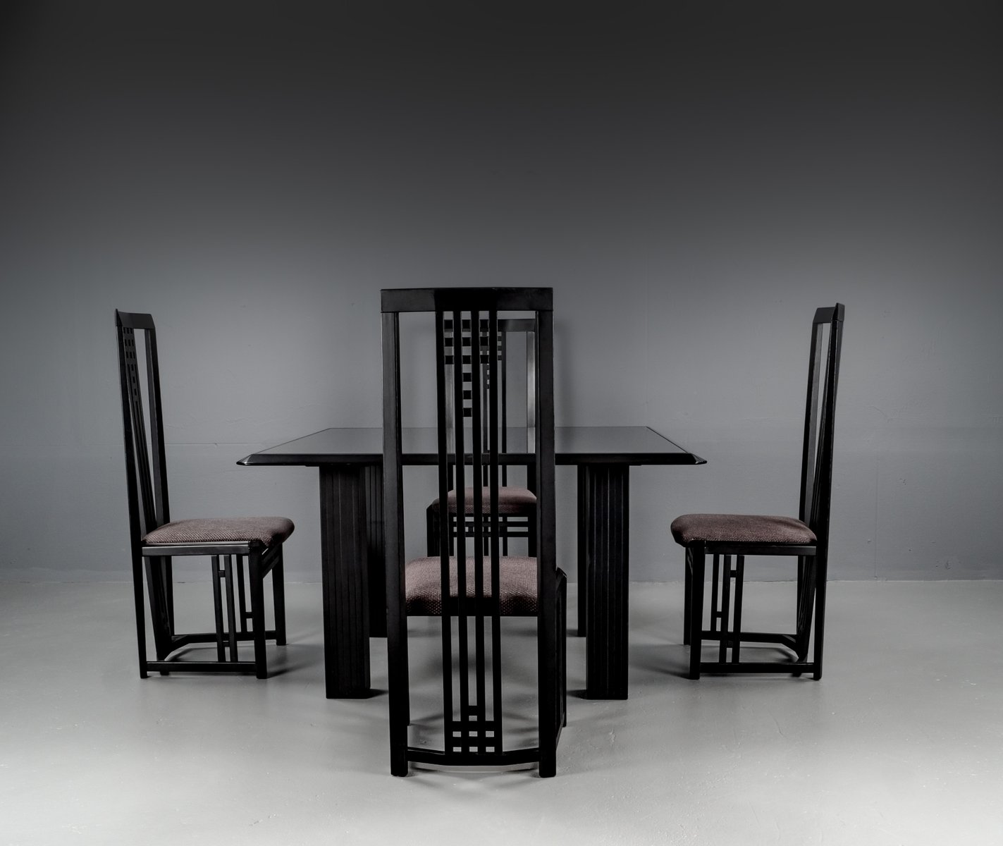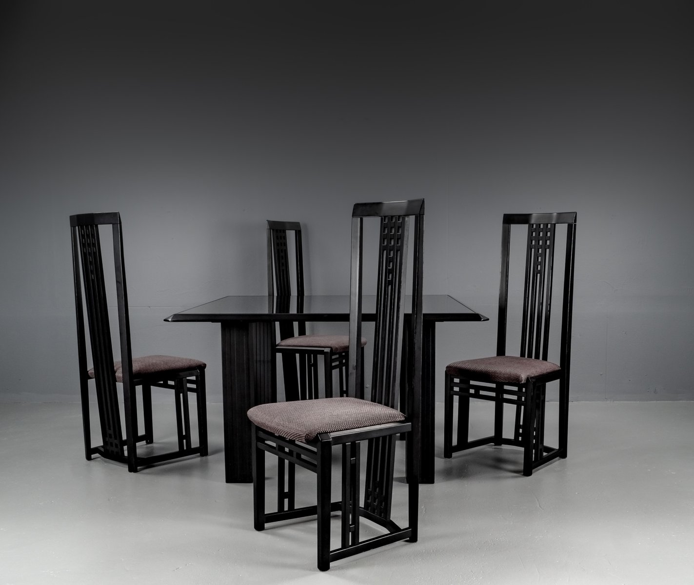 Table et Chaises de Salle à Manger Vintage Noires par Umberto Asnago, 1980, Set de 5