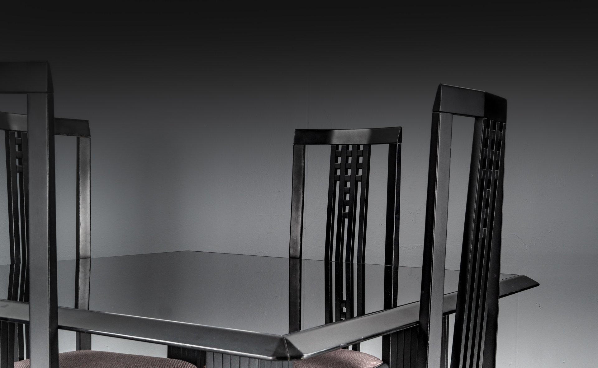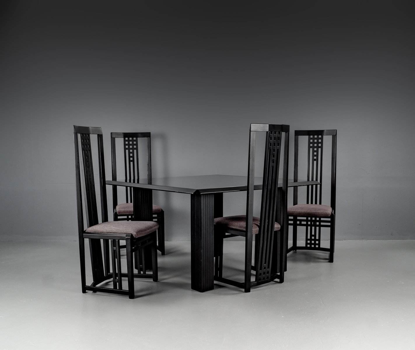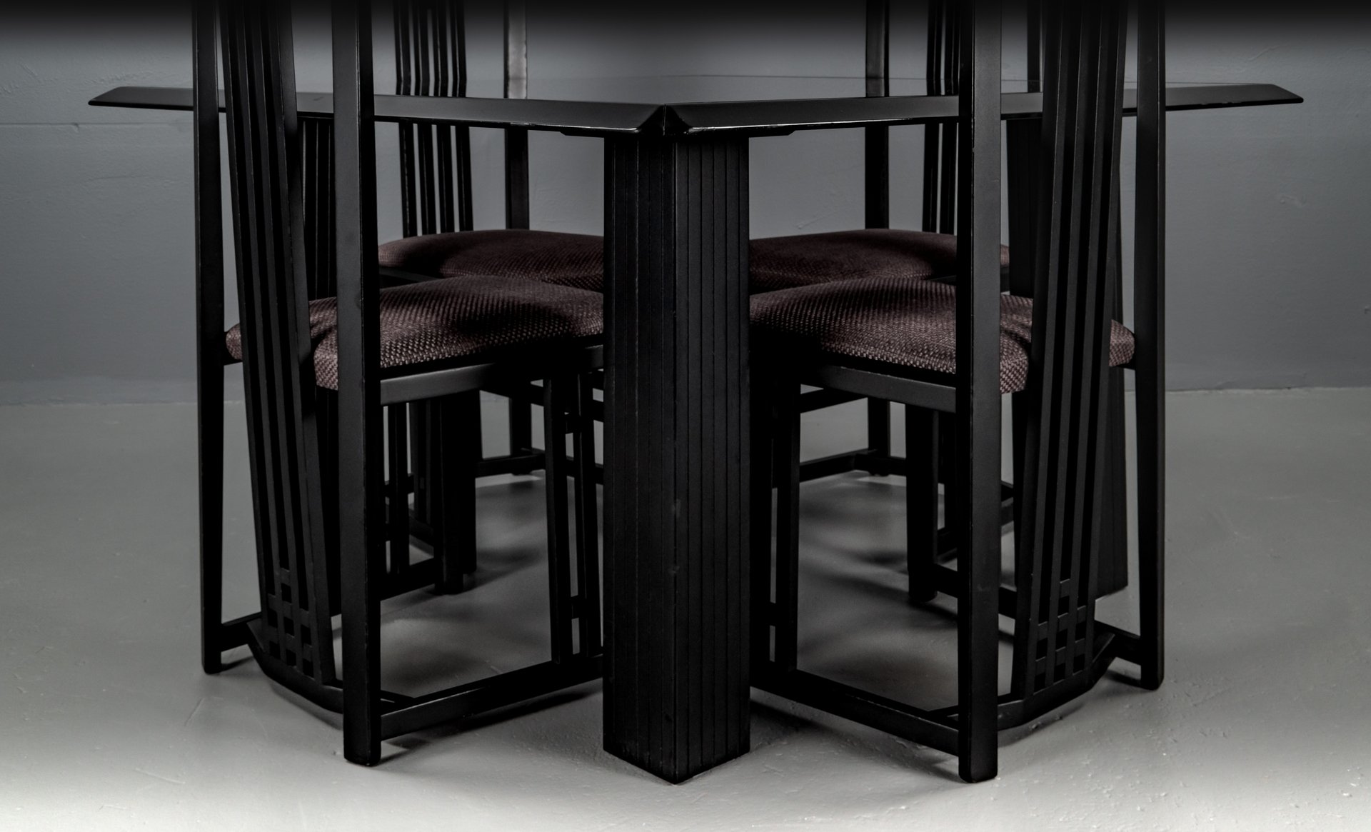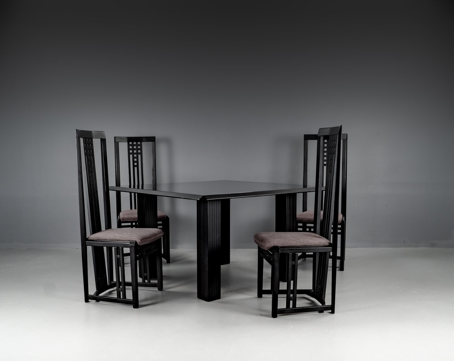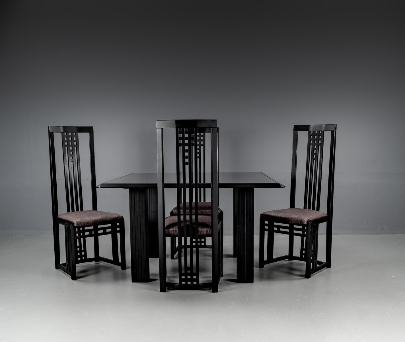 Table et Chaises de Salle à Manger Vintage Noires par Umberto Asnago, 1980, Set de 5