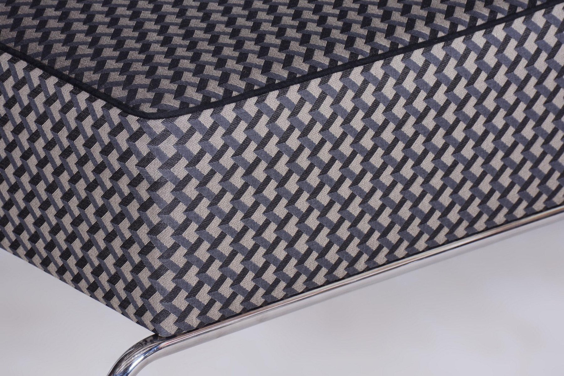 Un grand ottoman dans le style Bauhaus, qui peut également être utilisé comme table basse. Cette pièce a été entièrement restaurée en veillant à préserver son aspect et sa fonctionnalité d'origine. La structure est en acier tubulaire chromé, qui a été nettoyé professionnellement, ce qui lui donne un aspect élégant et poli. Le pouf a été récemment rembourré par des experts, ce qui le rend non seulement élégant, mais aussi très confortable et pratique pour un usage quotidien. Cet article présente des éléments de design Bauhaus classiques. Ce style se caractérise par des couleurs neutres et, à l'occasion, des couleurs primaires vives. Les concepteurs du Bauhaus évitent tout ce qui est compliqué et prétentieux, et recherchent plutôt des lignes épurées et modernes. Parfait pour un look à la fois intemporel et moderne.