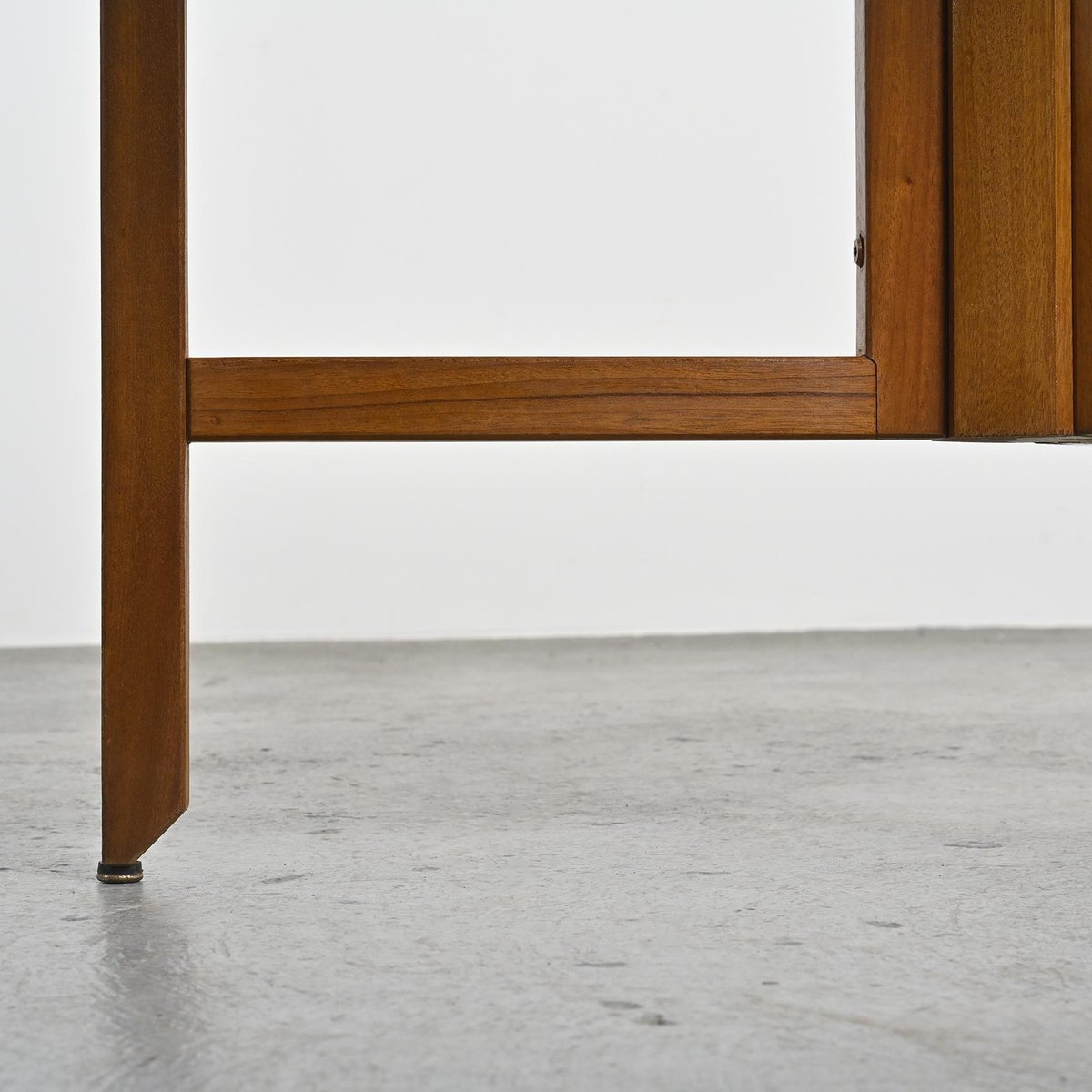 Around the time of the financial crash in 1929, Sornay devised what would prove to be his signature technique: cloutage, a method of studding the exterior of veneered furniture panels with a series of perfectly proportioned nails. Patented in 1932, cloutage—which lowered manufacturing costs without sacrificing functionality or elegance—could be found on nearly every piece of Sornay’s 1930s oeuvre, from cabinets and multitiered tables to his distinctive angular-based Rosewood and Mahogany Armchairs (1935). Sornay continued to experiment with new manufacturing techniques in the following decades, culminating with his late 1940s pioneering of a new system to produce modular furniture, in which long metal or wood bolts were used to hold furniture panels together. This innovative design, like similar contemporaneous work such as Elias Svedberg’s Triva series for Nordiska Kompaniet, was essentially a precursor to Ikea’s flat-packed furniture.
