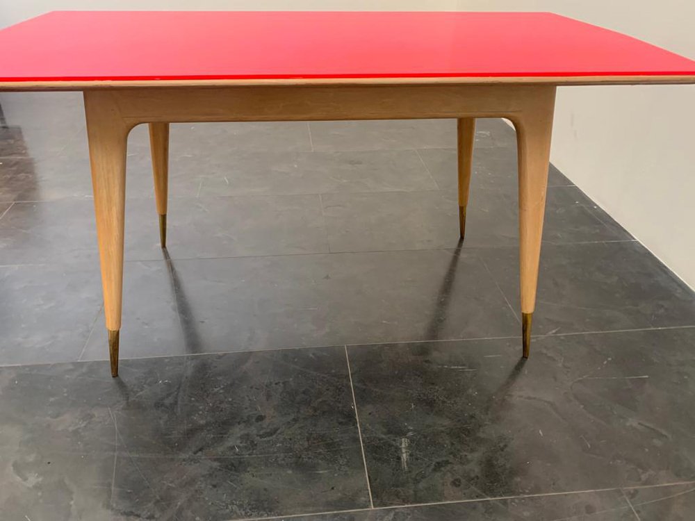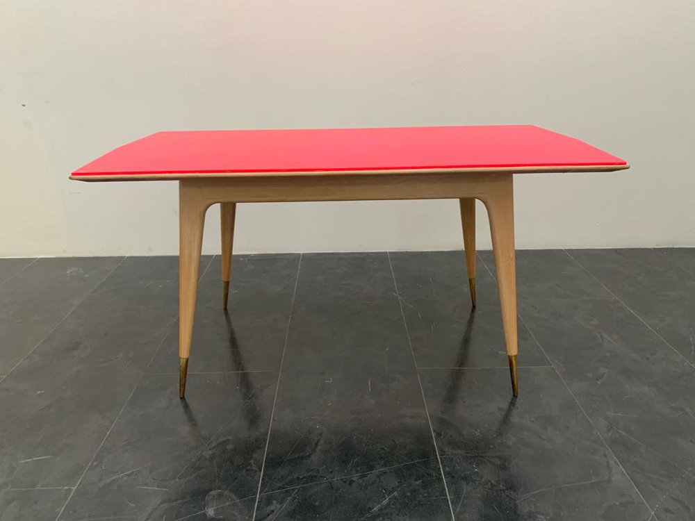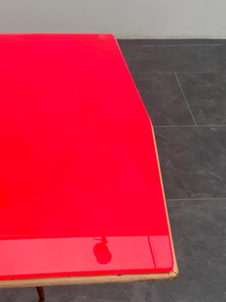 Table Ronde en Érable et Plateau Fuchsia, 1950s
