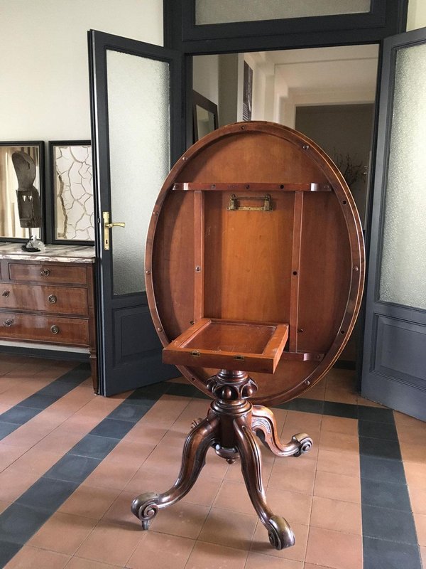 Table Victoria Design Postmoderne Ovale Inclinable en Noyer attribuée à Filmer, Londres, 1850s