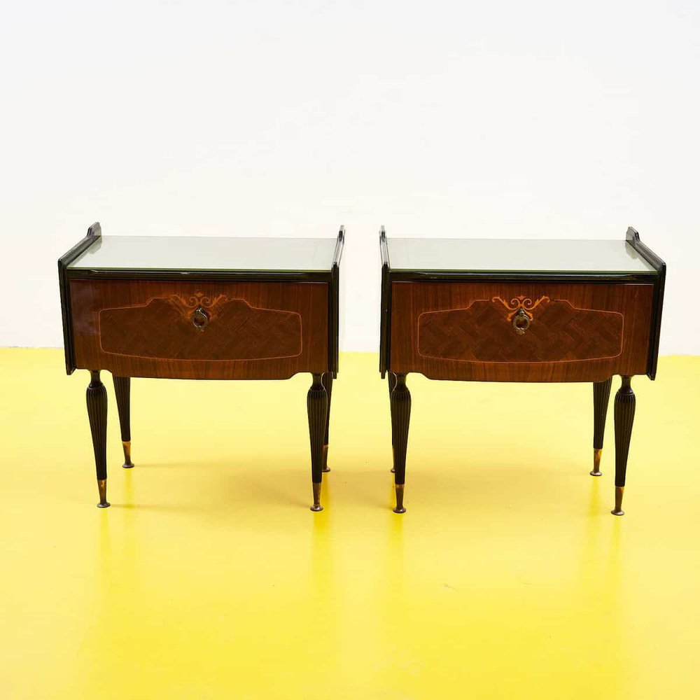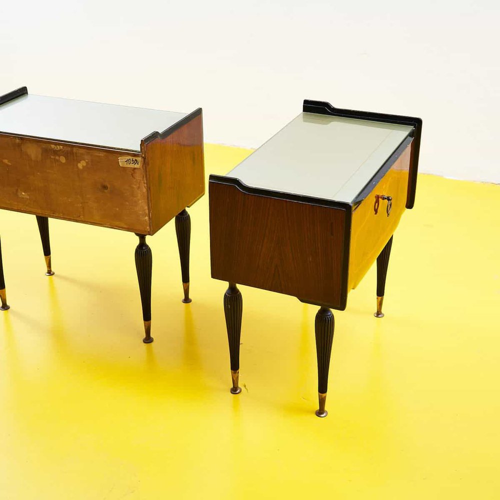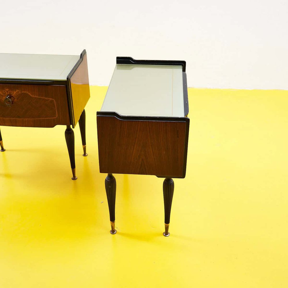 Tables de Chevet avec Plateau en Verre, 1950s, Set de 2