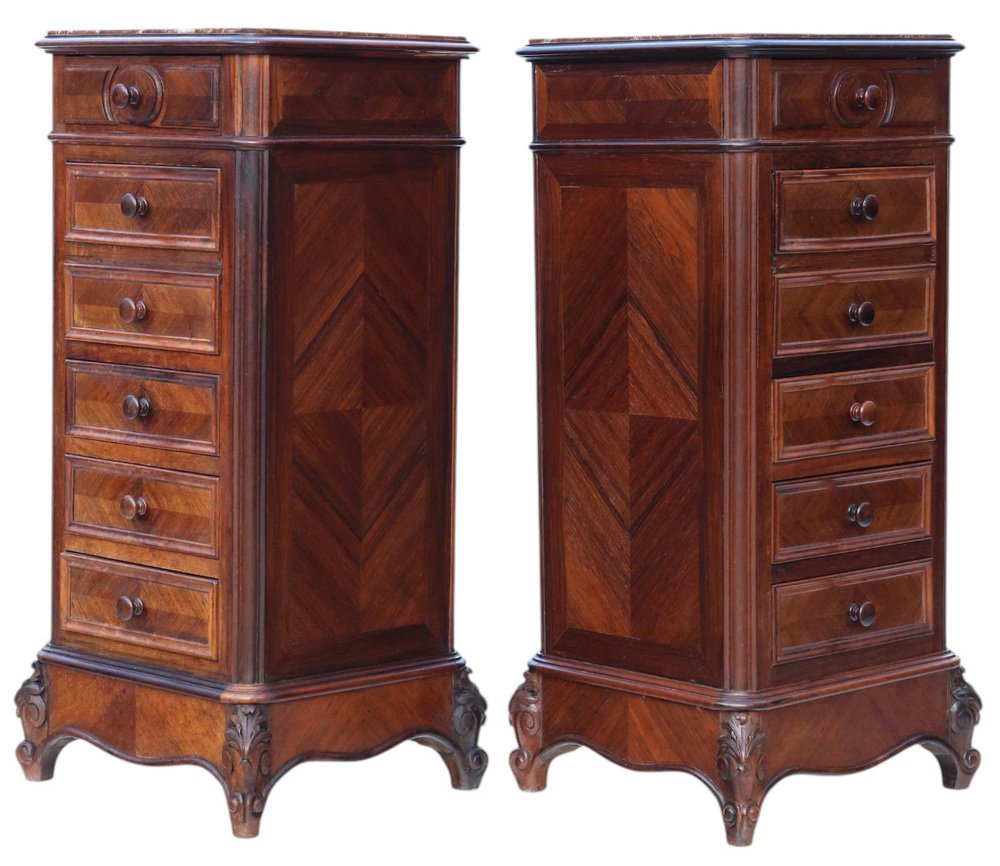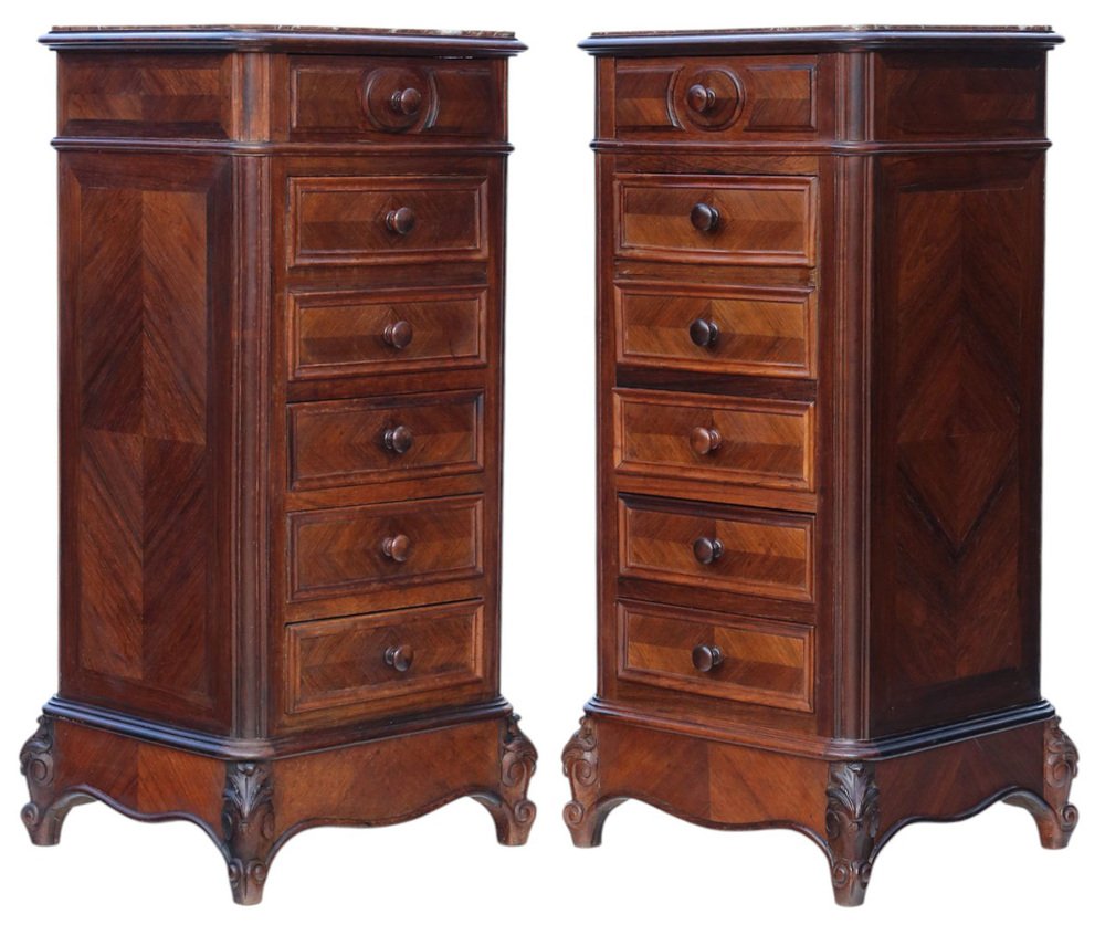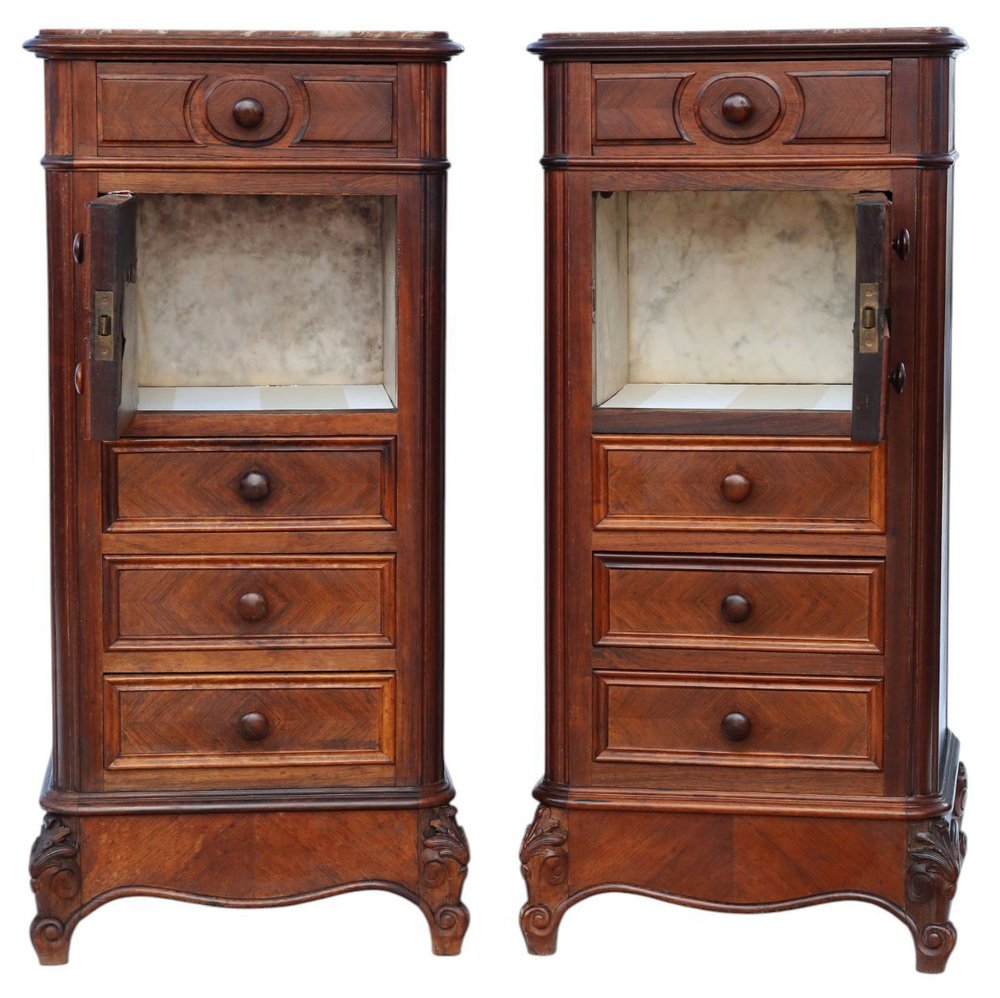 Ancienne paire de tables de chevet en placage de bois, vers 1910 - Tables de nuit de grande qualité