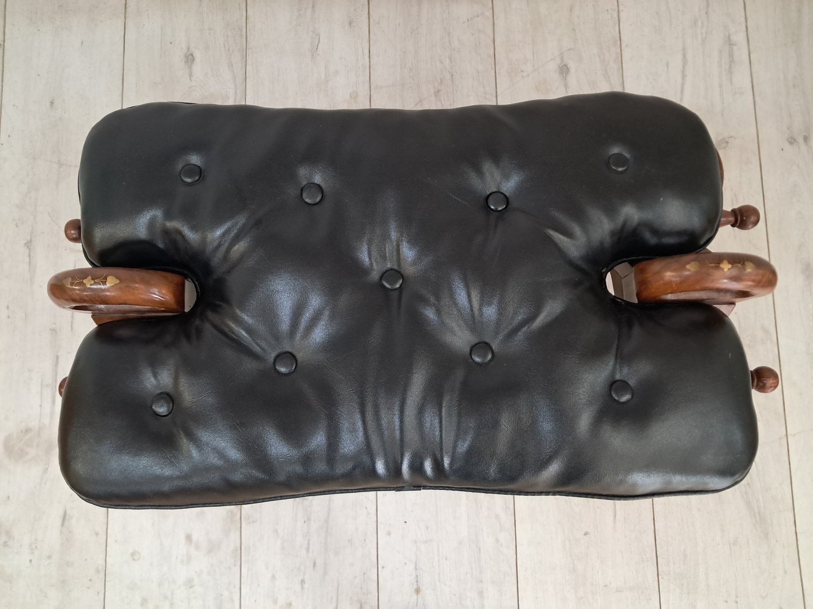 Vintage 1970s Camel Stool with Black Buttoned Leatherette Seat