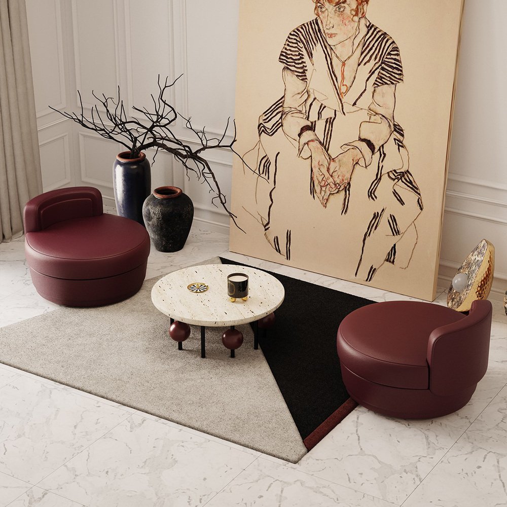 Using a 3D-tufted technique that combines cut and loop pile, the retro rug with geometric shape has a unique texture that adds a new sense of motion to the room.