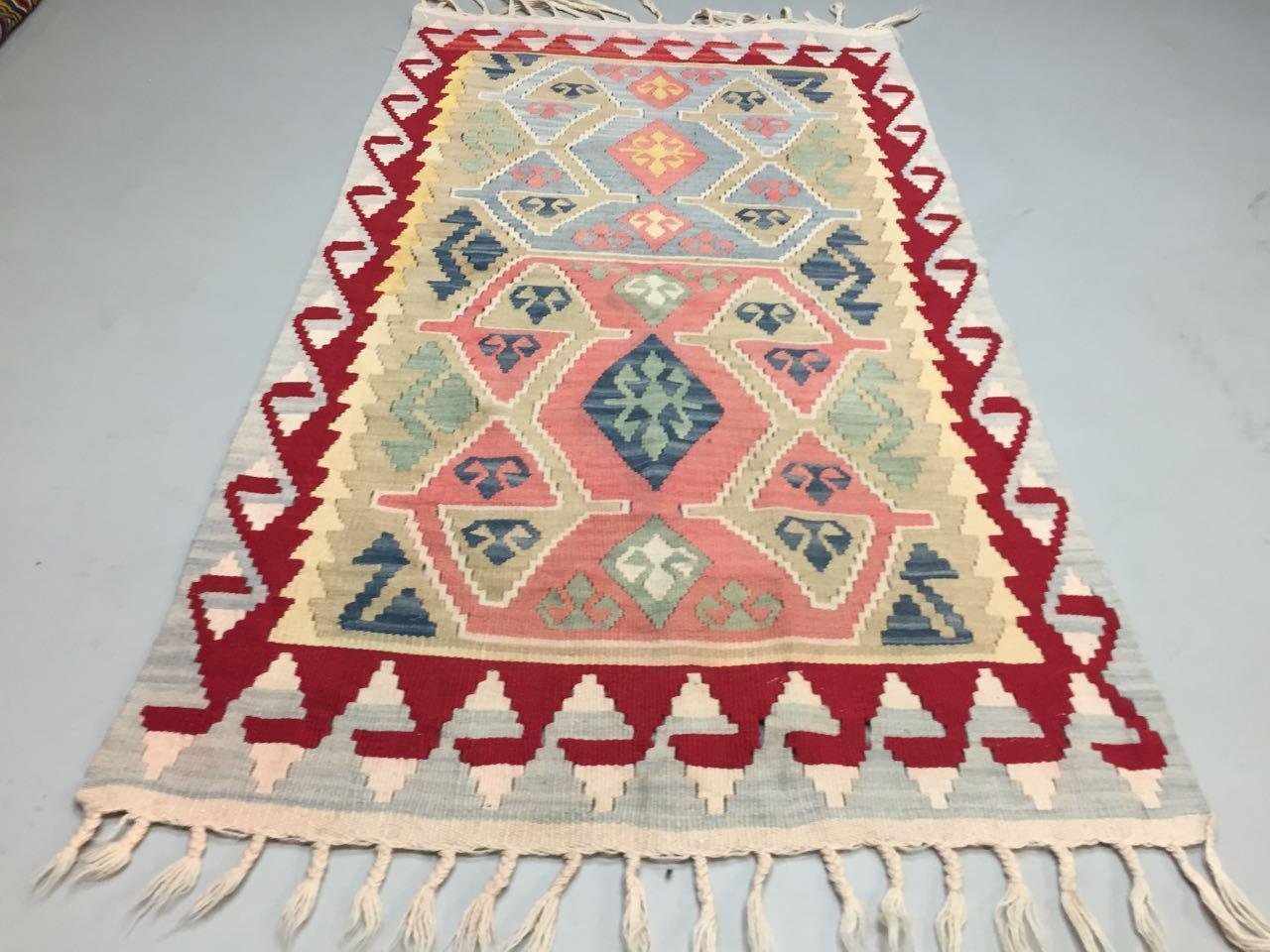 Old Turkish Kilim Rug, shabby chic, vintage, wool country home decor 146x81cm Beautiful Turkish Kilim, made in the 1970s, this is a lovely central Turkish rug from Kayseri region, woven with naturally dyed wool in variations of colour. Absolutely gorgeous rug. There is an insignificant colour run towards one end of the rug, you may be able to see in the photos, I am just putting it here to make sure that you know about it. Professionally cleaned.