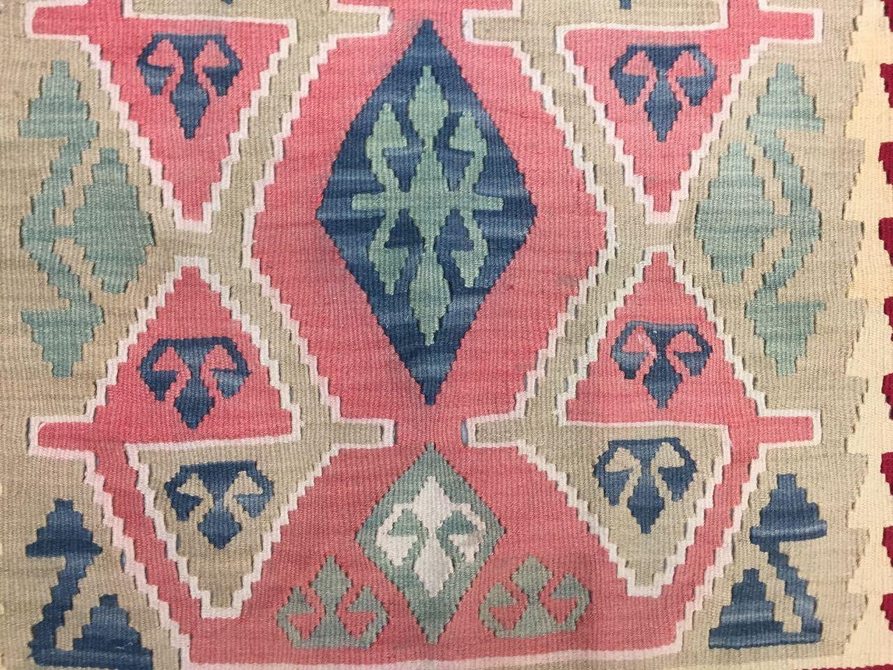 Vieux Kilim Turc, tapis miteux chic, vintage, décoration de maison de campagne en laine 146x81cm Beau Kilim Turc, fabriqué dans les années 1970, c'est un joli tapis de Turquie centrale de la région de Kayseri, tissé avec de la laine naturellement teinte dans des variations de couleur. Un tapis absolument magnifique. Il y a une couleur insignifiante à une extrémité du tapis, vous pouvez le voir sur les photos, je le mets ici pour que vous le sachiez. Nettoyé par un professionnel.
