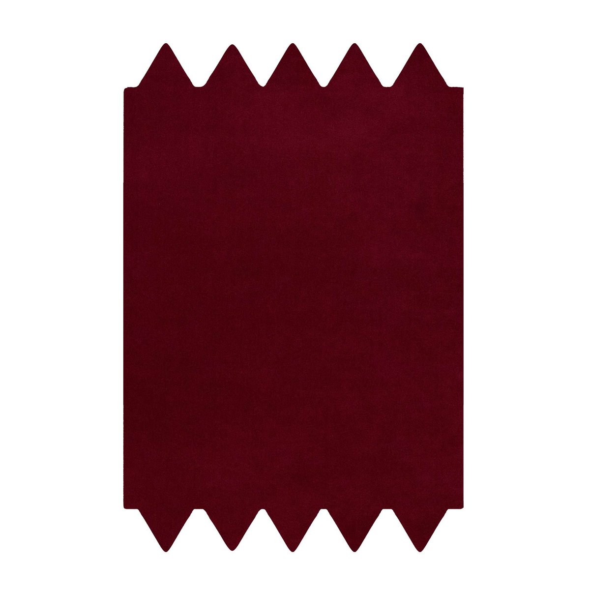 Le tapis Moody Red présente des formes triangulaires le long de la bordure en bordeaux profond, évoquant la passion, la force et l'élégance audacieuse. C'est un tapis rouge foncé qui rehausse les intérieurs avec intensité, transformant n'importe quelle pièce en une scène de style contemporain.