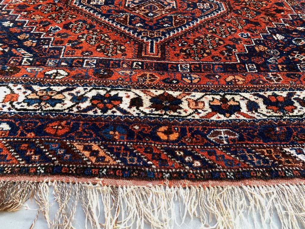 Tapis Oriental Tribal Antique en Laine Rouge, Marron et Bleue