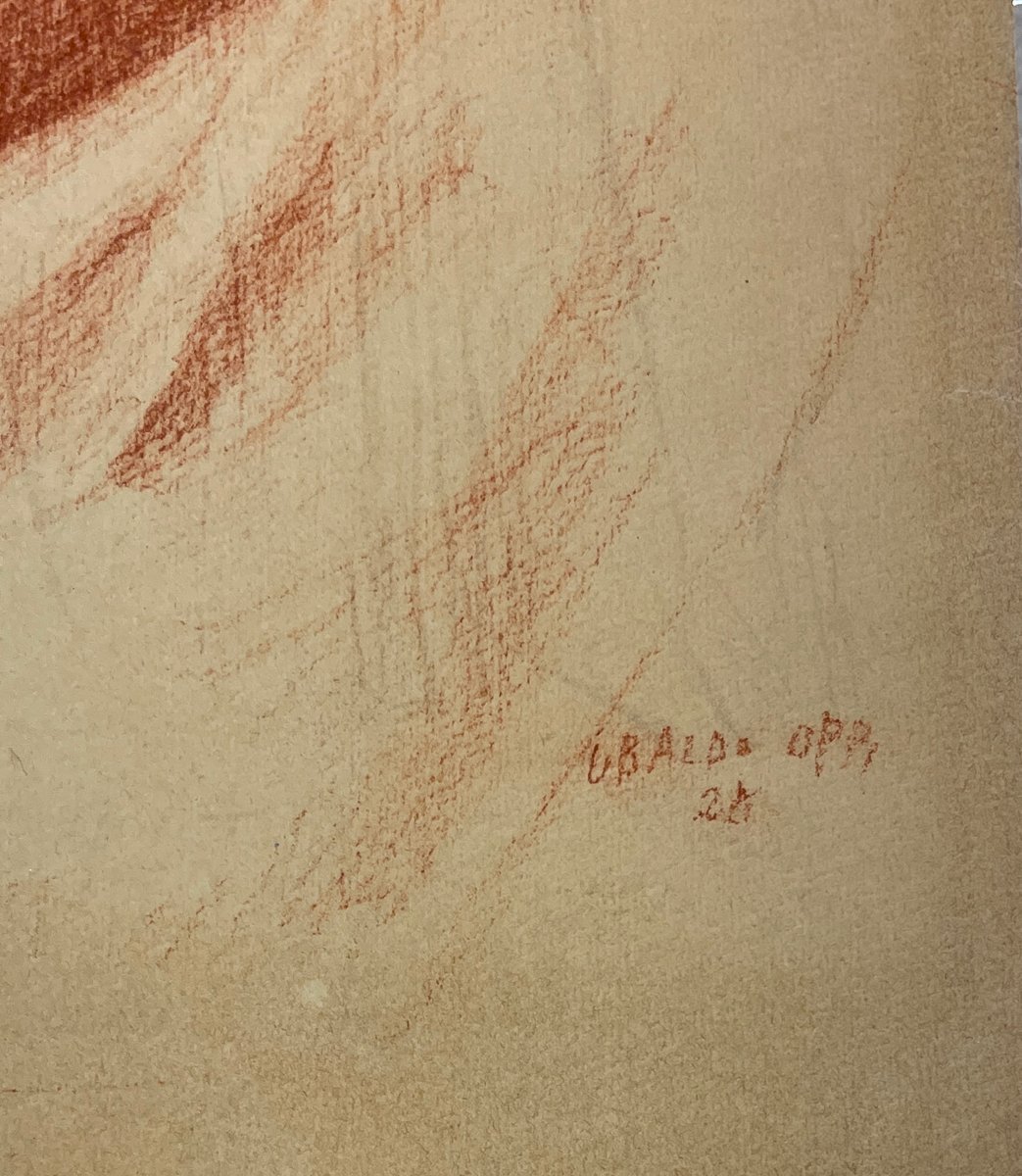 The drawing is dated 1928 and signed lower right. Furthermore, there is a certificate of authenticity on a photo signed by Ubaldo Oppi's son, with the stamp of the “La Scaletta” Gallery in Reggio Emilia.