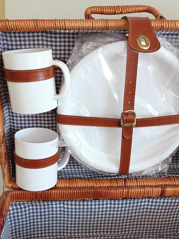 Valise de Pique-Nique Vintage en Osier, France, 1940s