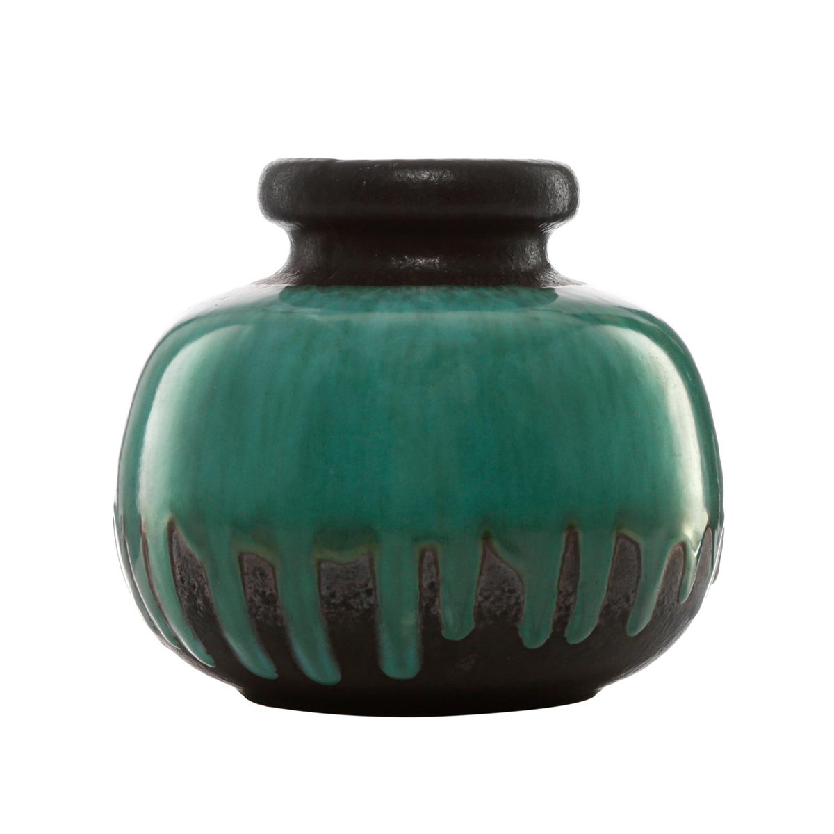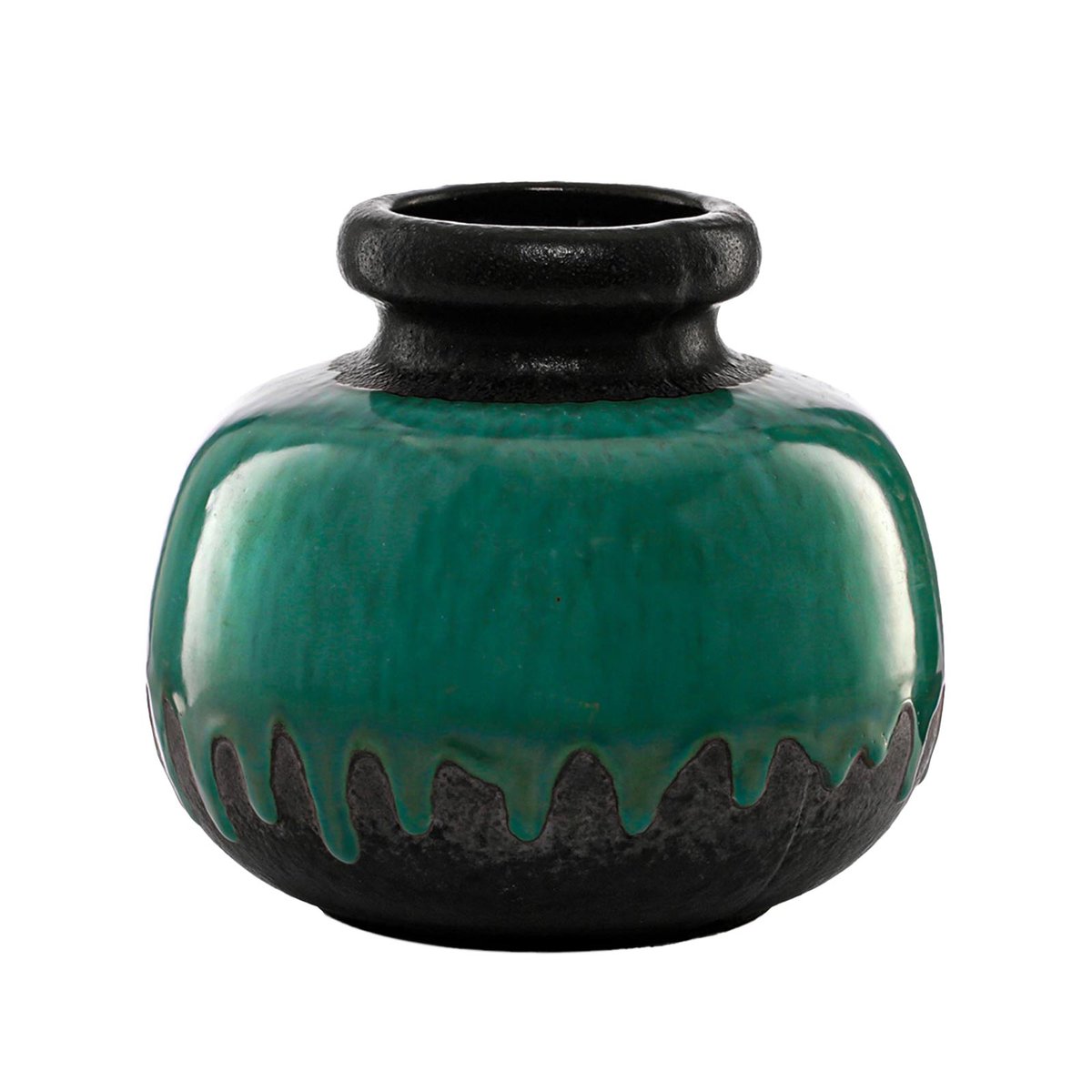 A beautiful bulbous ceramic vase by Scheurich West Germany, with green drip glaze, from the 1970's.