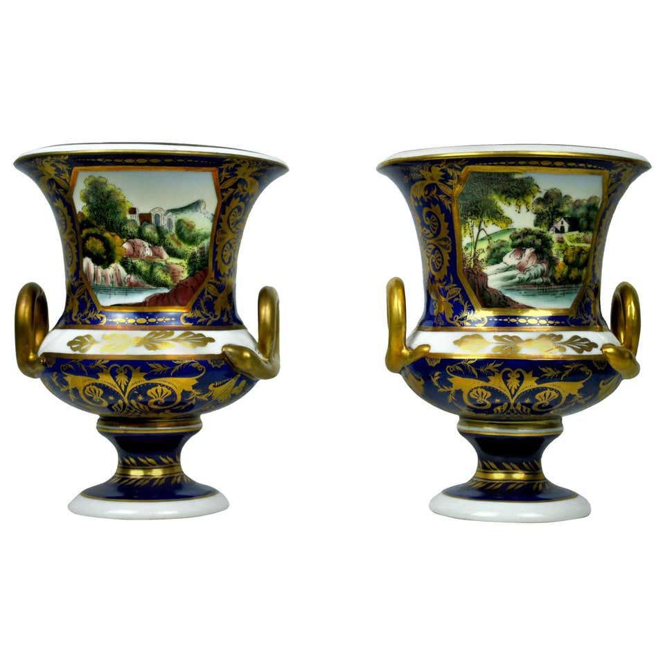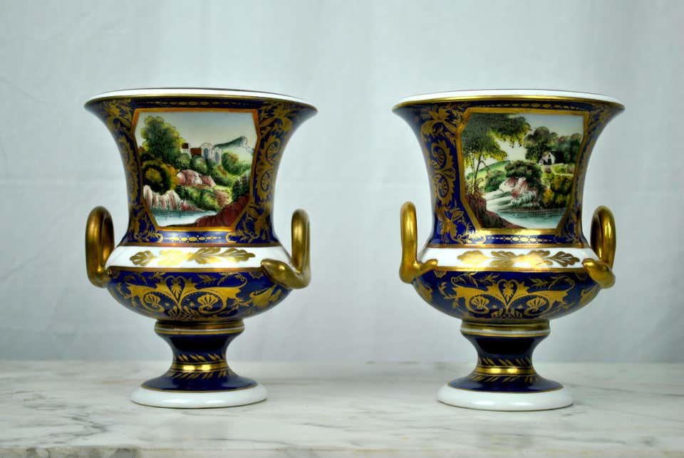 Vases Bleus et Dorés Peints à la Main, 20ème Siècle, Set de 2