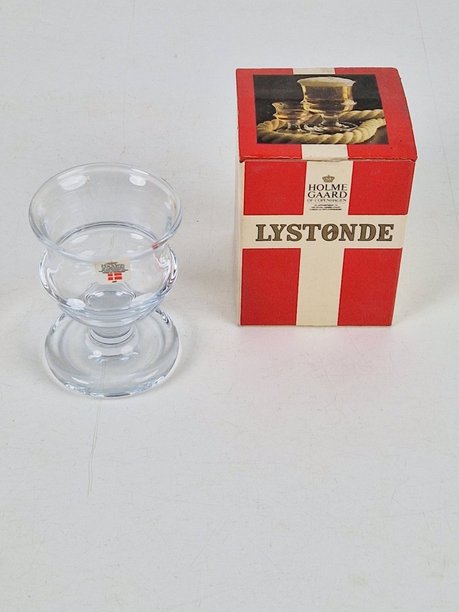 Holmegaard, initialement fondé en 1825, est le plus grand et le plus ancien fabricant de verre du Danemark. Bien qu’une grande partie de ses premiers travaux soient considérés comme peu originaux et peu influents, les créations de Jacob E. Bang, Per Lütken et de Michael, le fils de Bang, sont considérées comme ayant transformé l’entreprise en centre du design danois entre les années 1930 et 1980.