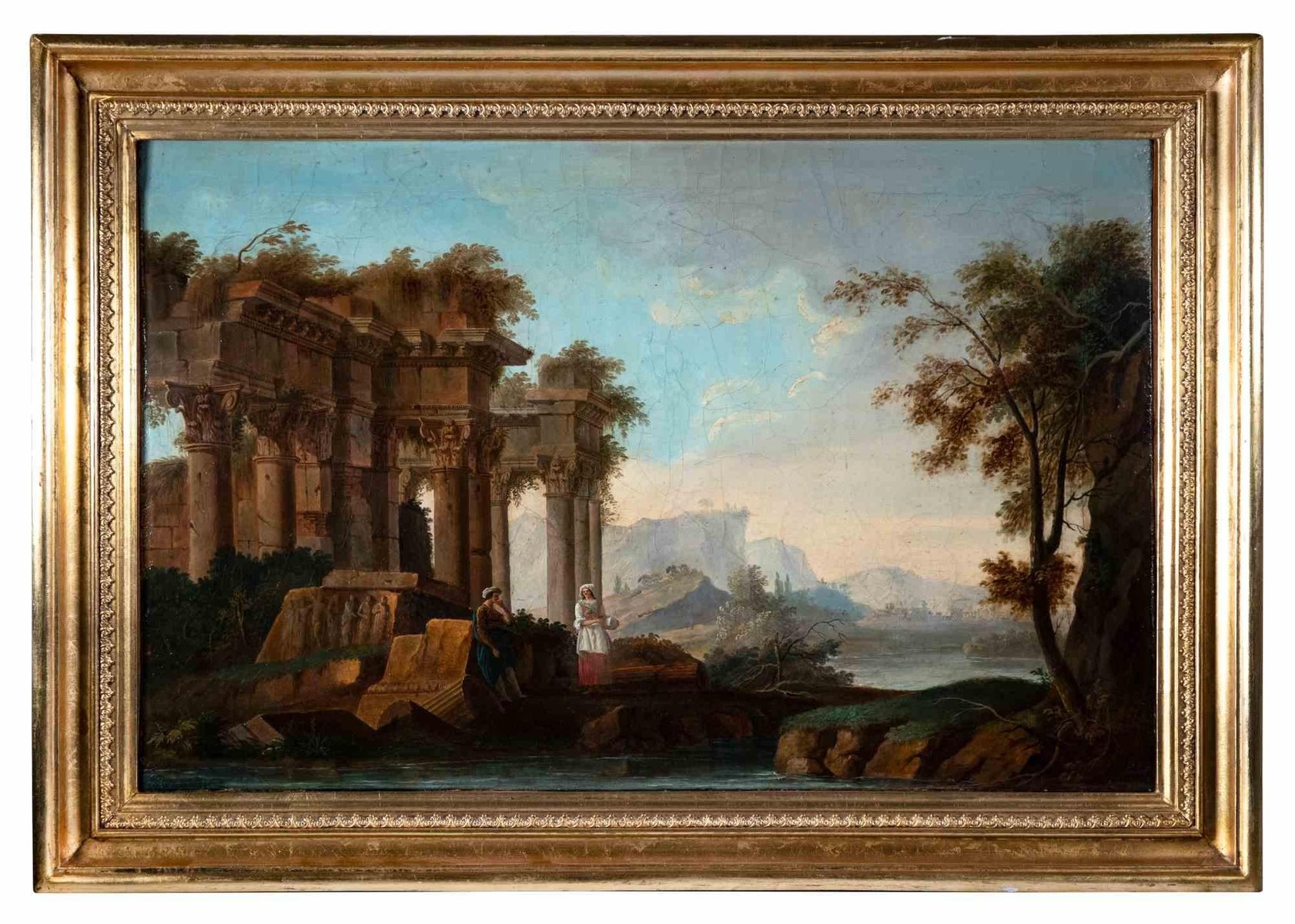 Vinzenz Fischer, ruines antiques, peinture à l’huile originale, fin du XVIIIe siècle