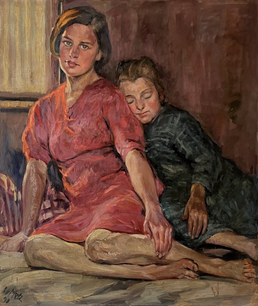 W. Metz, Jeunes Filles au Repos, 1947, Huile sur Toile