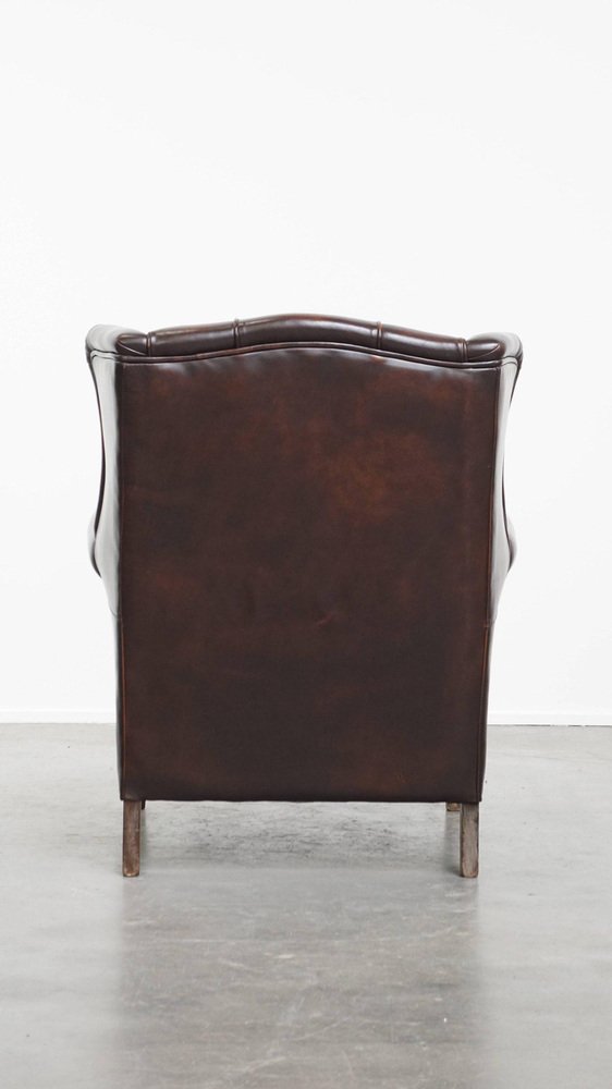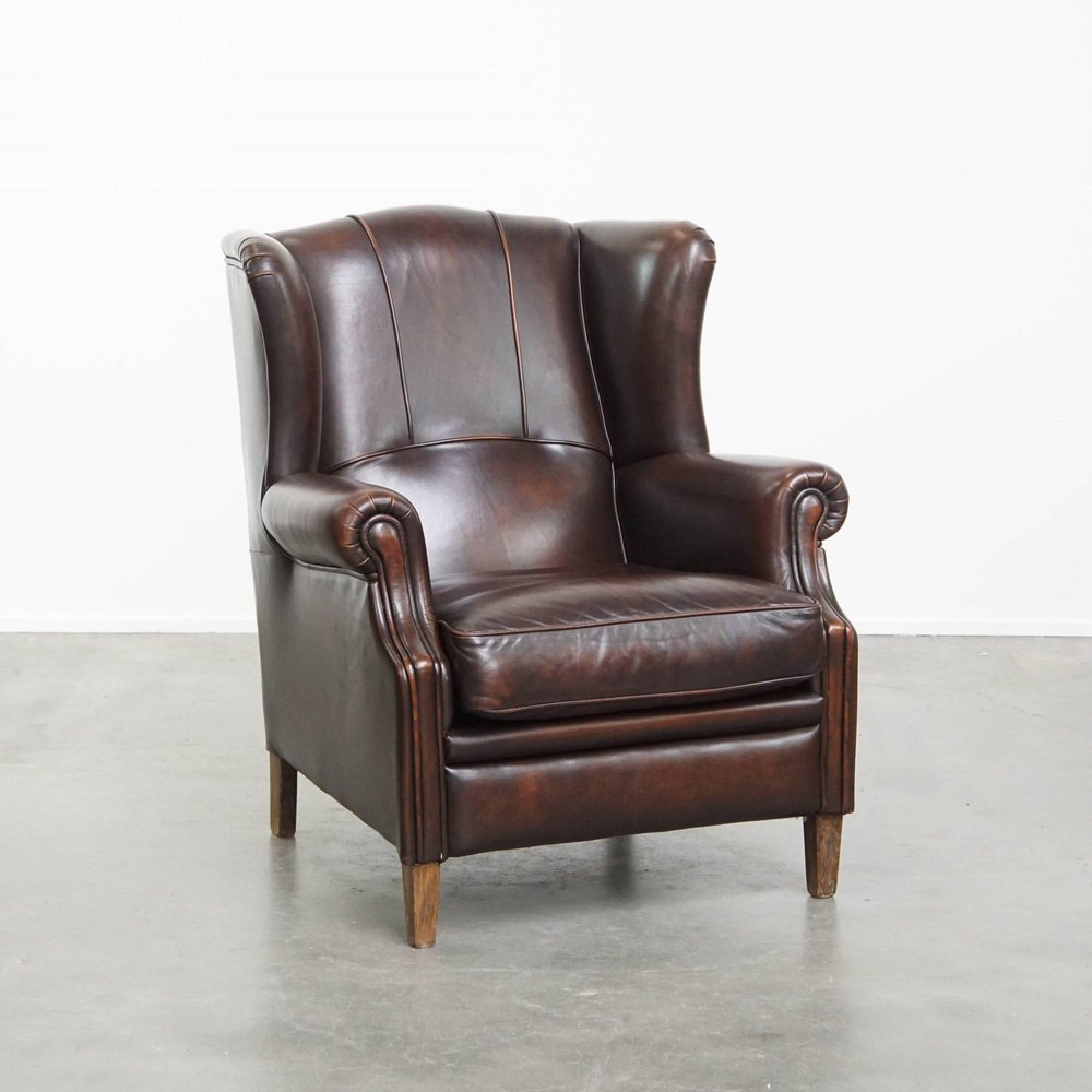 Wing Chair de Style Anglais en Cuir de Vachette