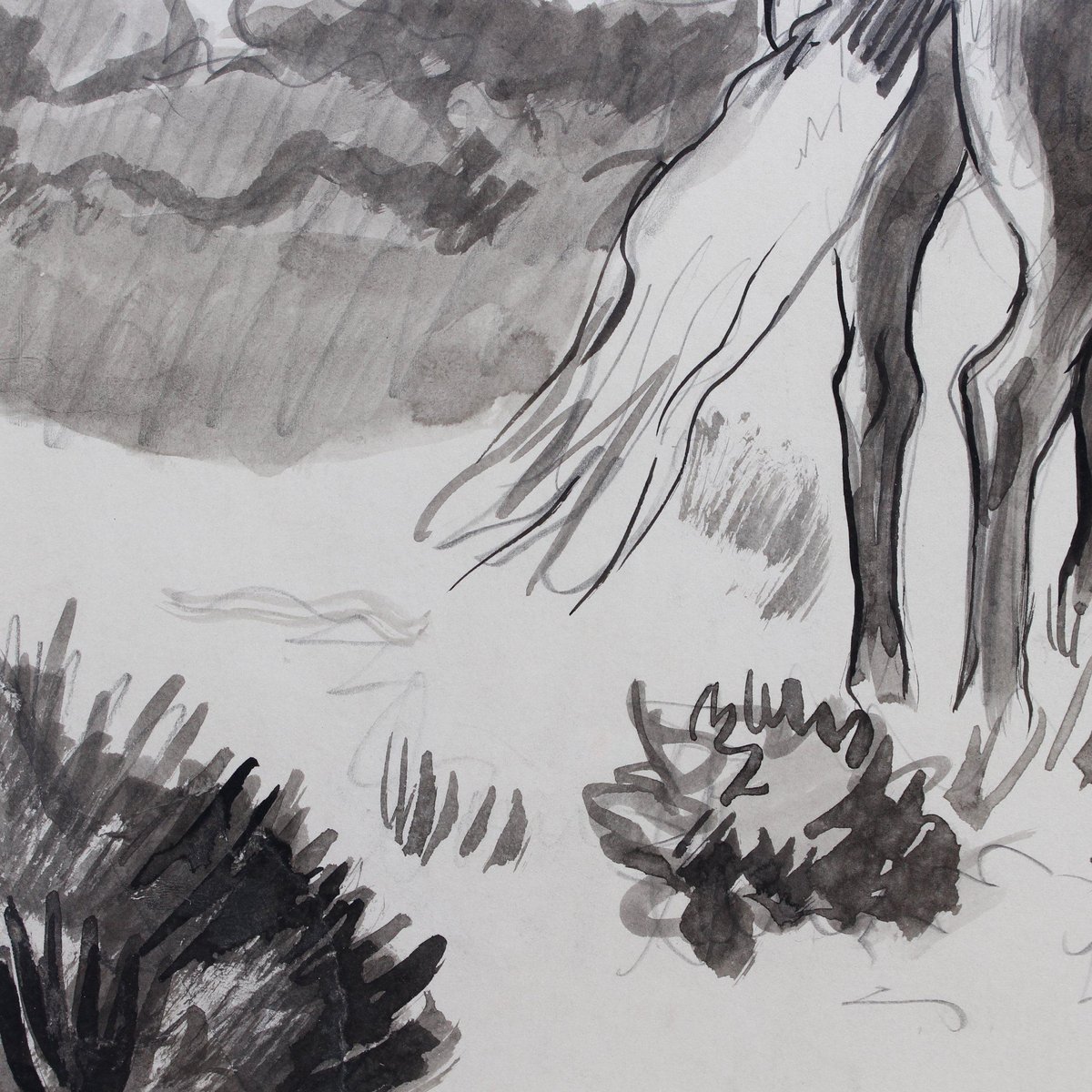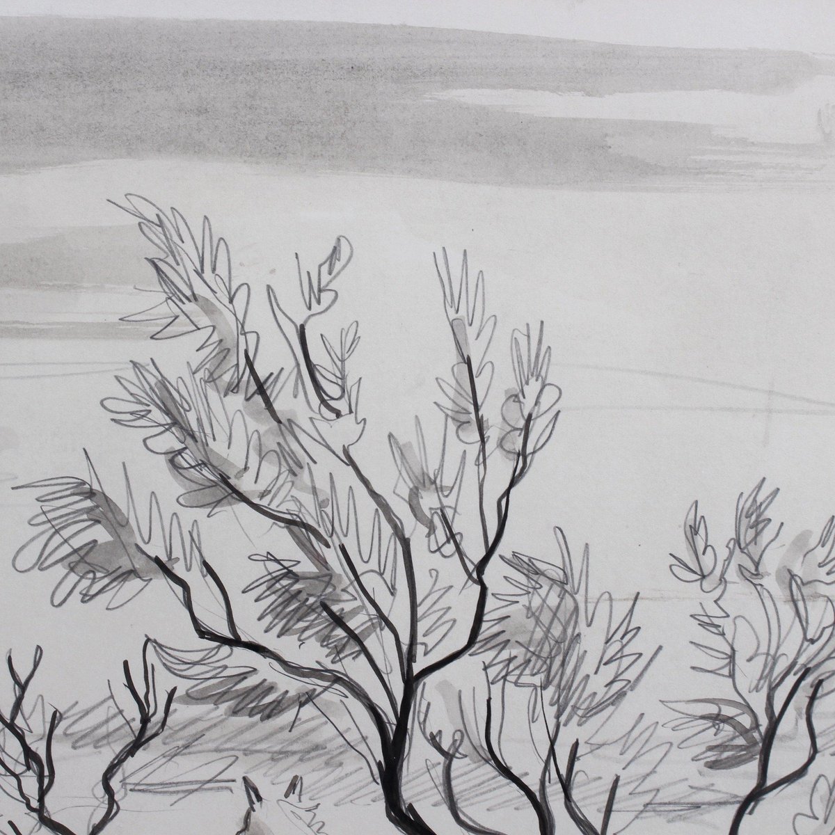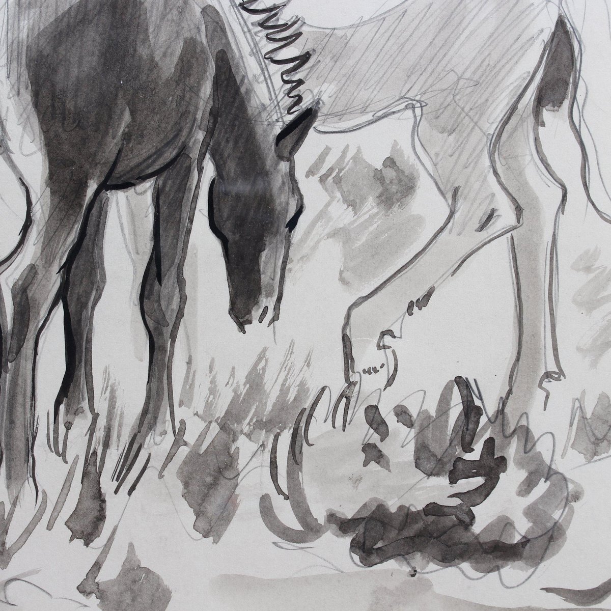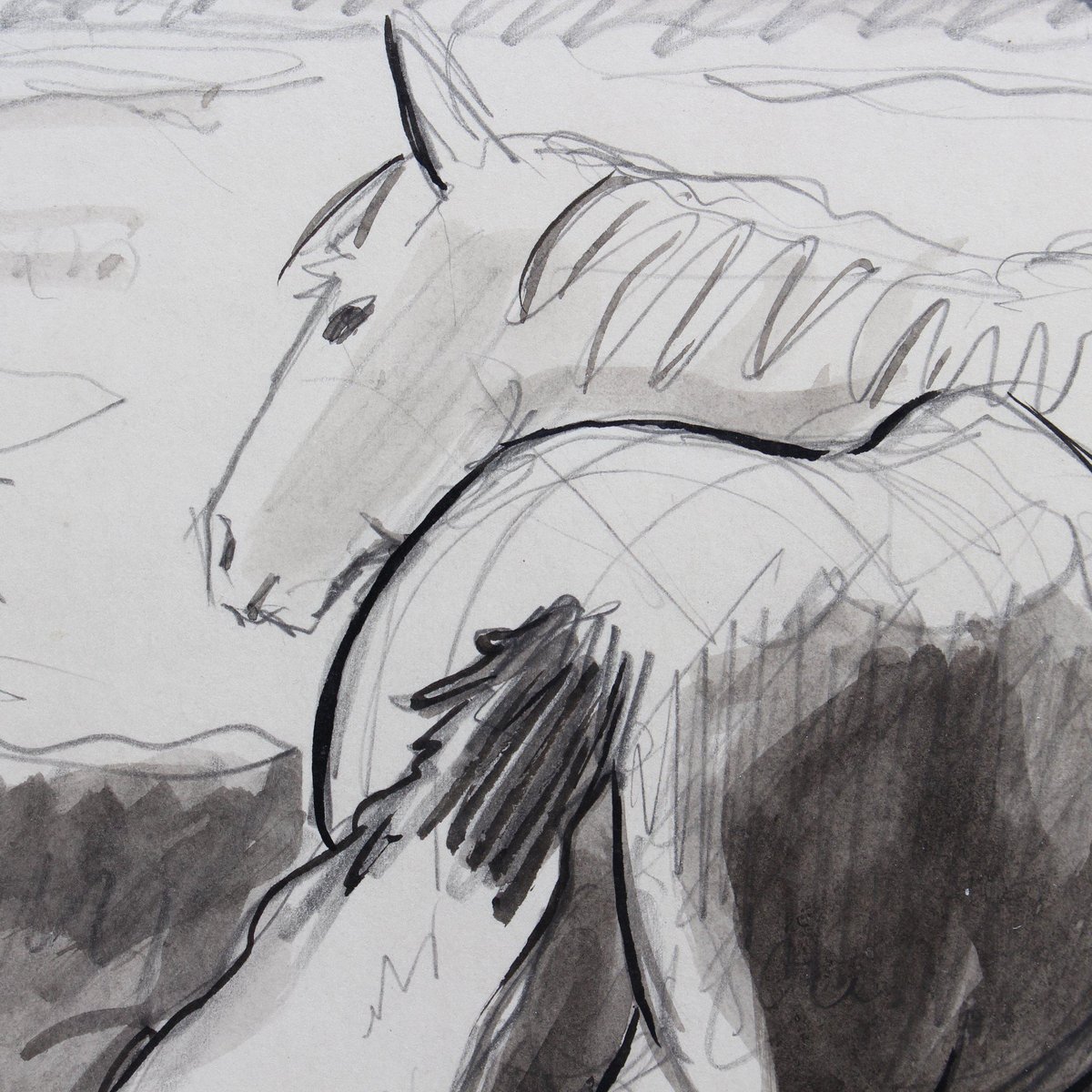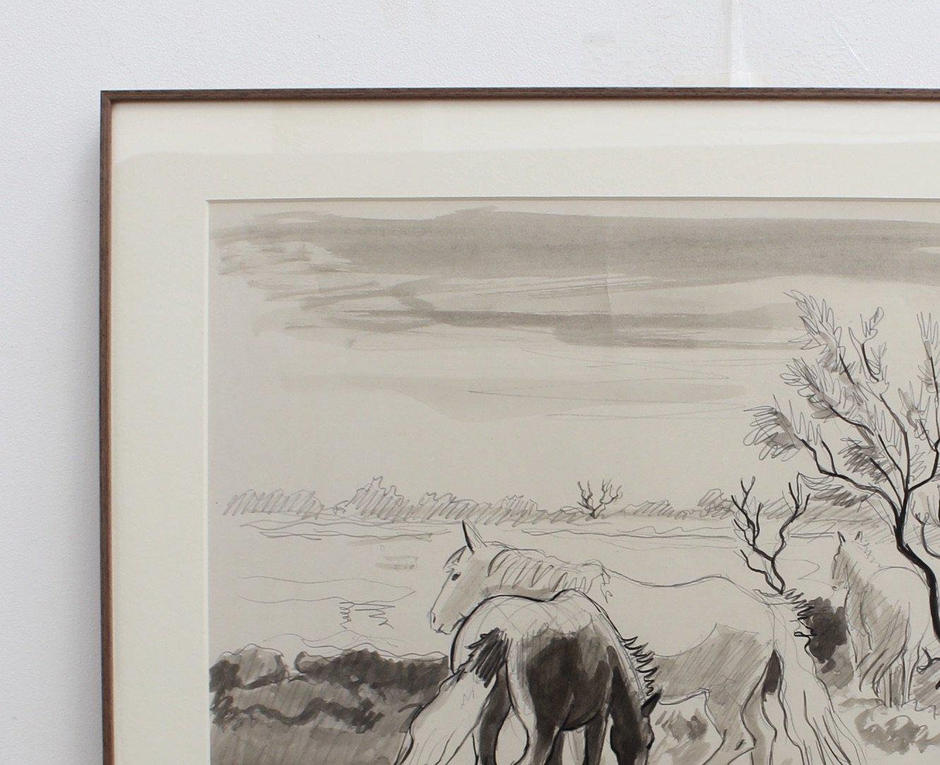 Horses at the Edge of the Pond', pencil, ink and watercolour on art paper, by Yves Brayer (1980). Brayer loved the Camargue region of France and painted it widely. The Camargue is a vast, swampy delta near Arles, very exotic, with tall marsh grasses where pink flamingos, black bulls and white horses roam freely. This image depicts three horses in the Camargue near pond's edge. Although there are many horses that still run free in the area, there are cowboys — called gardians — who ride the white horses on the beaches and herd black cattle, while flamingos wade in the shallow marshy waters. Dating back to the early 16th century, the gardians are a professional order of cowboys who protect and care for the herds of horses and black bulls that roam around the region. They're one of the oldest groups of cowboys in the world and the ancestors of the first American cowboys. Back in the 1600s, these gardians sailed to New Orleans, where they rode through the bayous of Louisiana and Texas, rounding up the cattle. This original artwork is signed by Brayer with a personal note for whom he created the piece. It says in French, ''to the Master Printer Jacques Barroux with my friendship. 1980'' This was most likely to thank him for a collaboration on a lithograph project. It is in good condition and is newly framed and glazed. There is a small crease in the upper centre-left section of the artwork in the clouds. It does not affect the overall impression of the painting. Please enjoy the many photos accompanying this listing. Upon request a video of the artwork may be provided. About the Artist : Yves Brayer (1907 - 1990) was born in Versailles, France. Determined to be an artist from an early age, he set out for Paris in 1924, initially studying at the academies in Montparnasse, and from there he attended the École des Beaux-Arts. Whilst still a student he exhibited at the Salon d’Automne and the Salon des Indépendants, and in 1927 Brayer left Paris for Spain with the aid of a state grant to enable him to study the works of the Spanish Masters in the Prado. On his return to Paris in 1934 he exhibited a collection of paintings inspired by his travels in Europe and Morocco to great acclaim. Having moved south to Cordes in the Tarn region of France after the War, Brayer then discovered the area which was to have the greatest artistic influence on his work: Provence. He was enchanted by the diverse and architectural forms of the Alpilles mountains, and by the vast expanse of the Camargue region with its ubiquitous white horses and black bulls. From then on he spent several months each year working in Provence. He also made several trips to Mexico, Egypt, Iran, Greece, Russia, USA and Japan where he was quick to grasp the unique rhythm and light of each country. A large collection of Yves Brayer’s paintings are on permanent display both at the Museum of Modern and Contemporary Art in Cordes, in the Salle Yves Brayer and at the Musée Yves Brayer in Les Baux de Provence, as well as various museums in France and elsewhere. Yves Brayer died in 1990. Dimensions with frame : H 52.5 cm / 20.7'' W 64.5 cm / 25.4'' Dimensions without frame : H 40.5 cm / 15.9'' W 53.5 cm / 21.1''